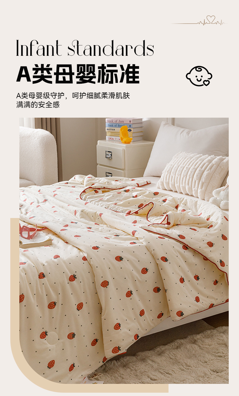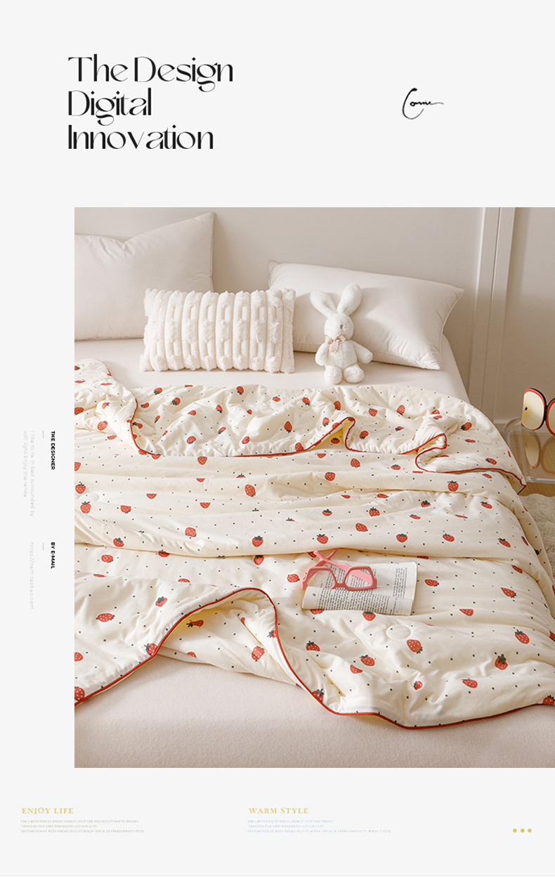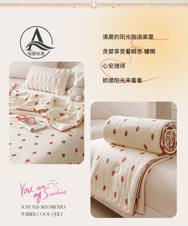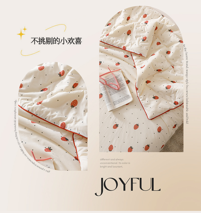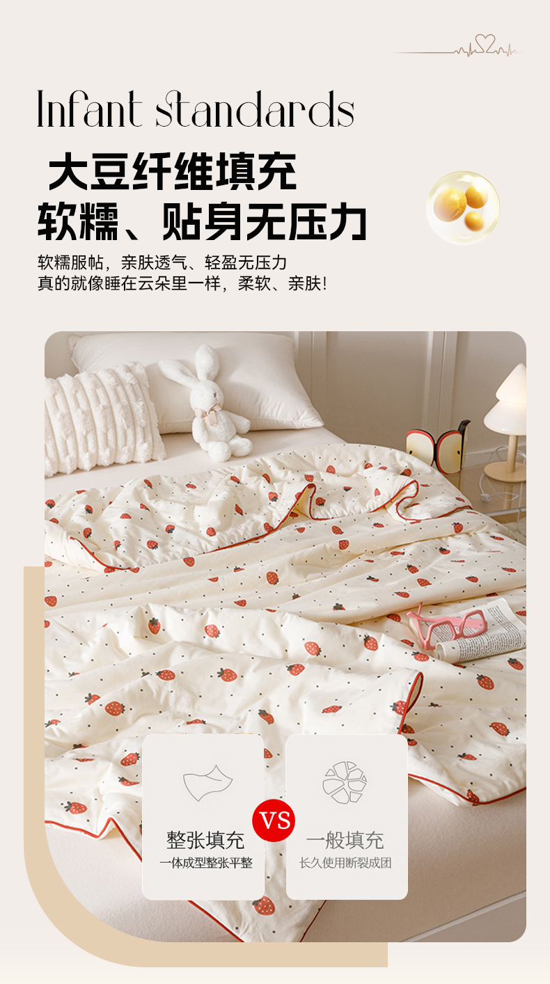 商品名称:优被业 2025新款A类牛奶丝针织棉夏被20%大豆(四周踩棉)软糯夏凉被空调被 草莓