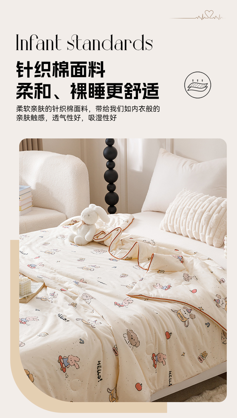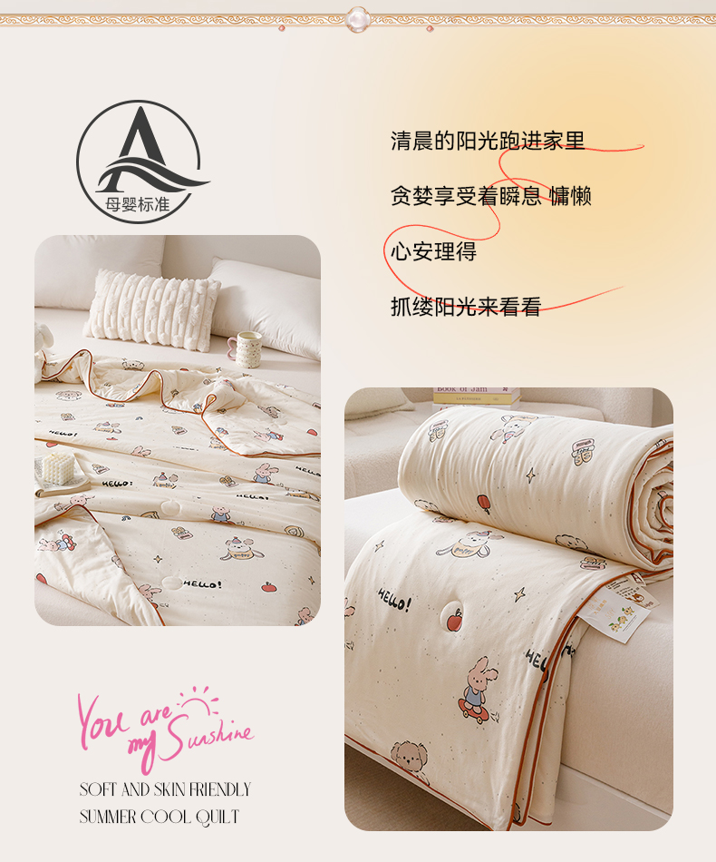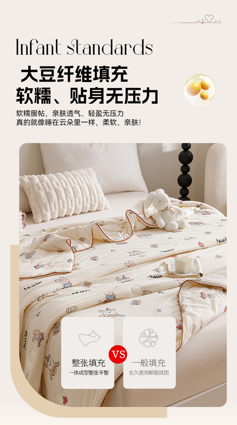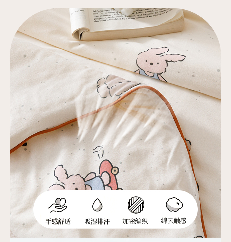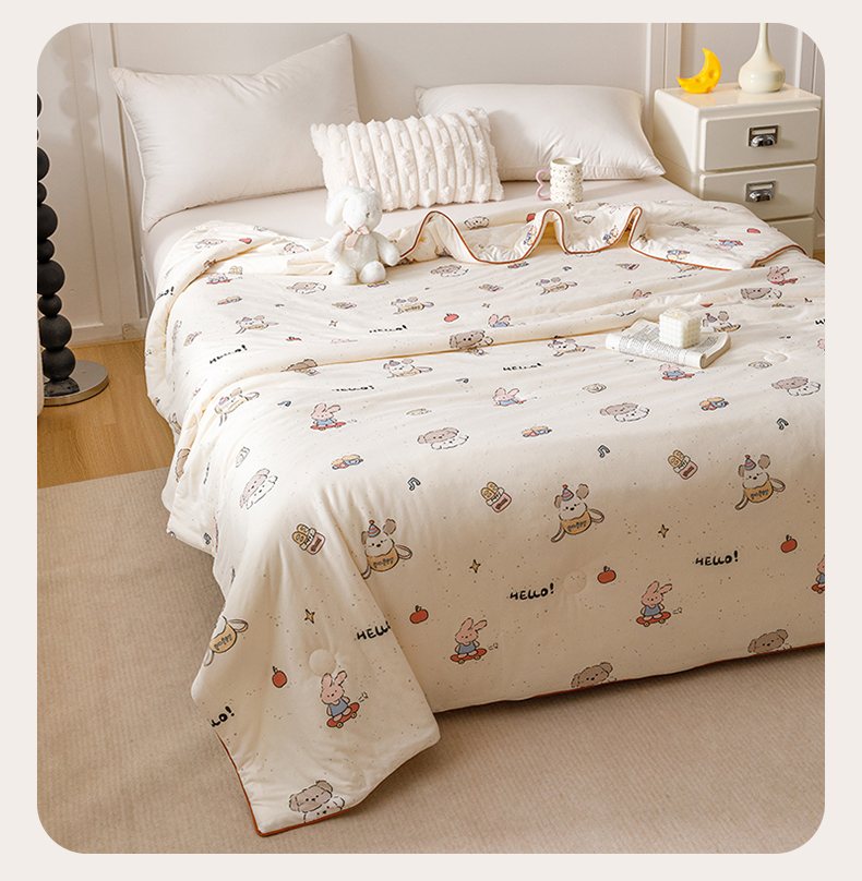 商品名称:优被业 2025新款A类牛奶丝针织棉夏被20%大豆(四周踩棉)软糯夏凉被空调被 滑板兔