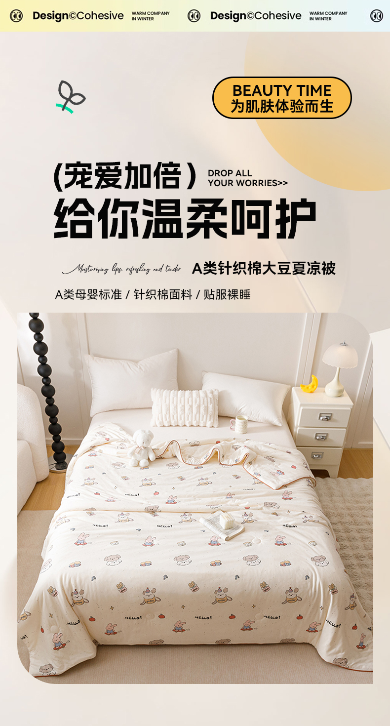 (总)优被业 2025新款A类全棉小清新大豆夏被,KT猫,宁夏,小夜猫,小迷糊,快乐小狗,泡泡糖,草莓园,集美