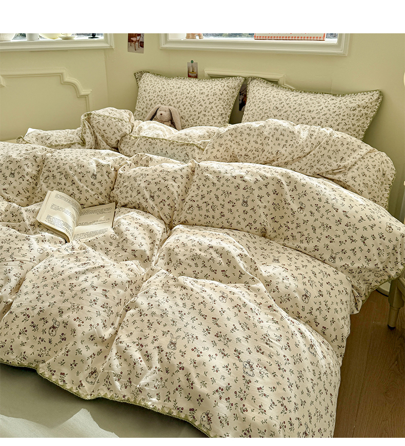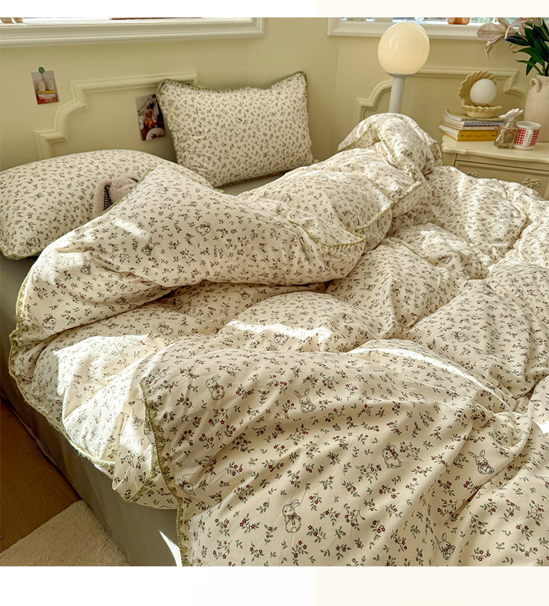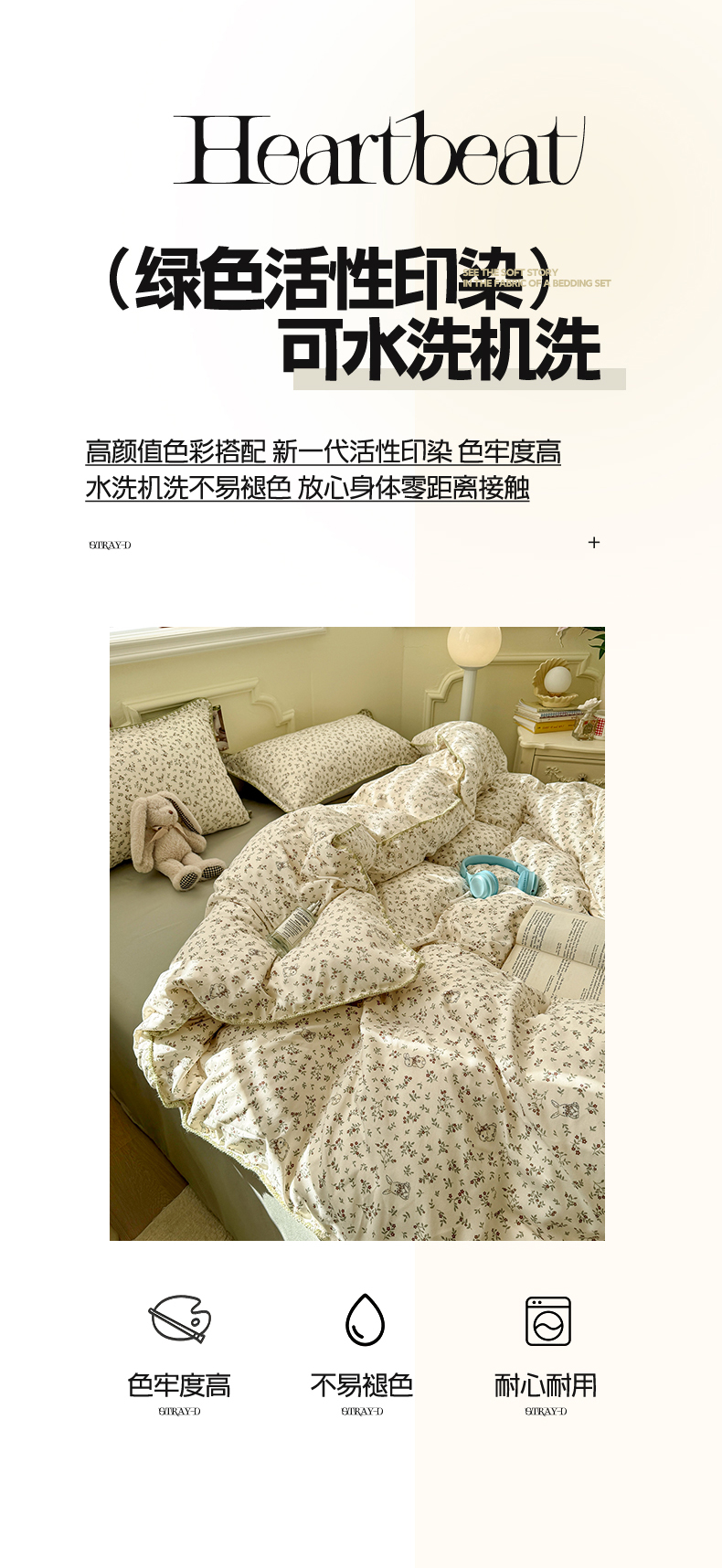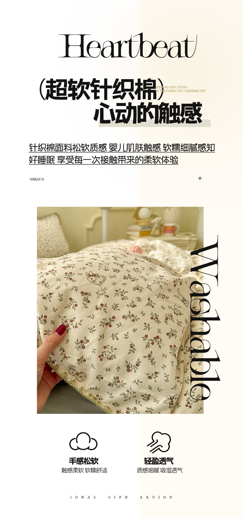 商品名称:韩都家居2025新款水洗双层纱针织棉三角针四件套(包含买家秀) 花田薇