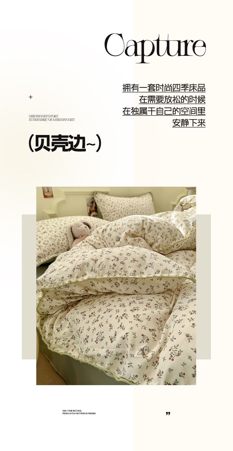 (总)韩都家居 2025新款法式花边印花牛奶绒四件套,茶花,豹纹咖,画蝶,加州风情,洛莉,陌离,南瓜,岁月留声,忘忧,艺境