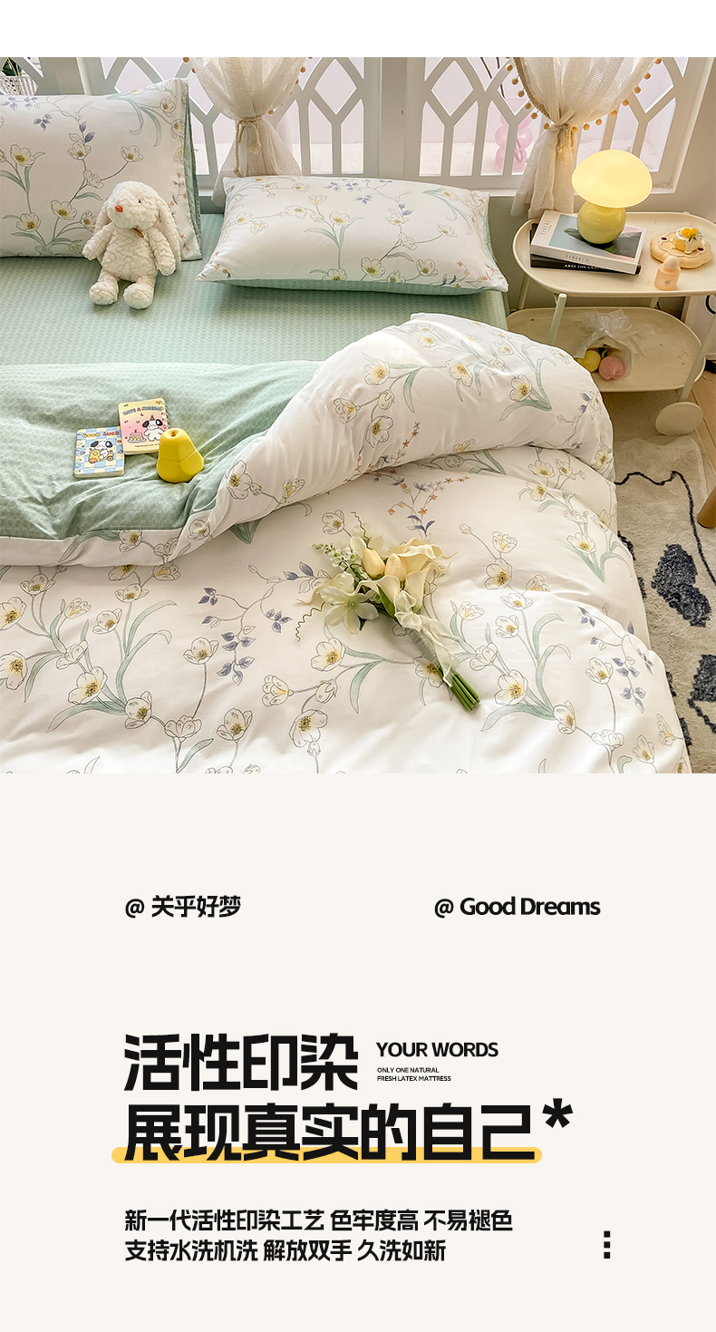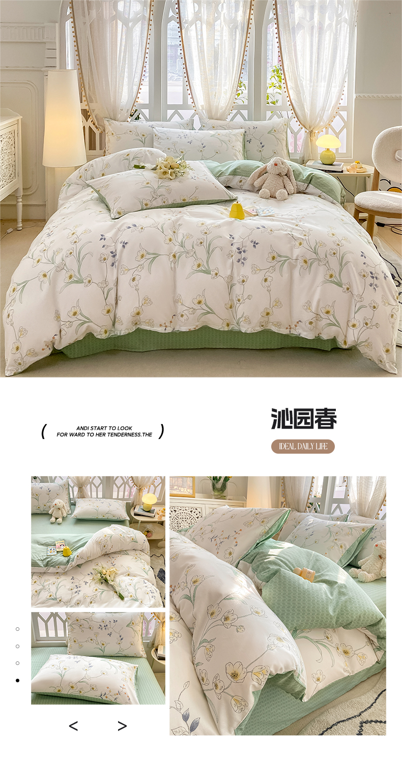 宜家坊 2025早春新品全棉纯棉喷气13070小清新印花纯棉四件套-风格二 沁园春