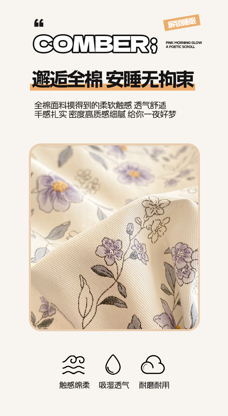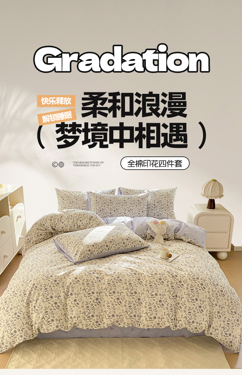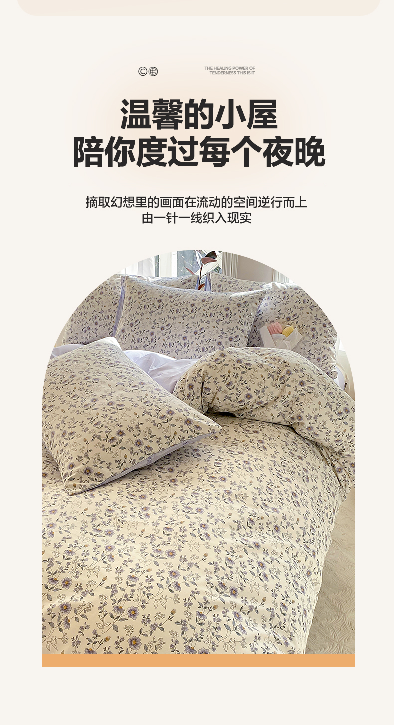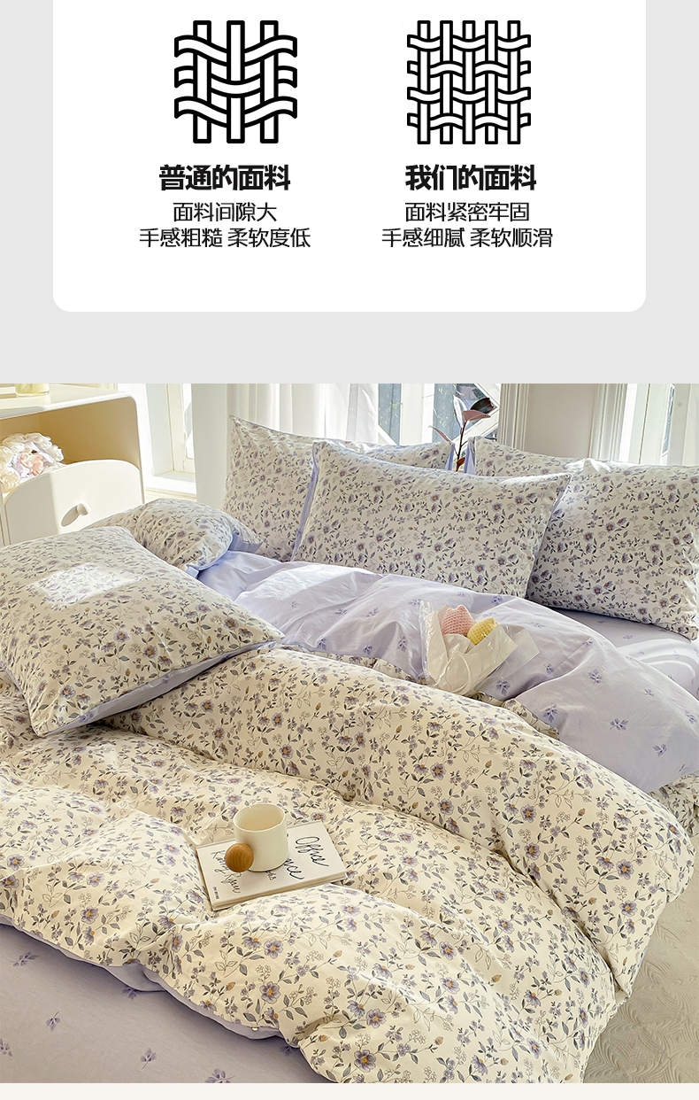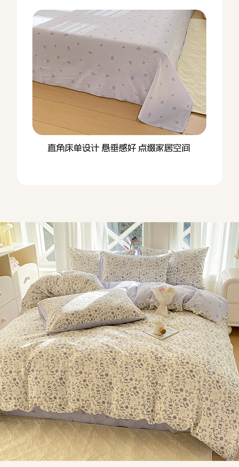 商品名称:宜家坊 2025早春新品全棉纯棉喷气13070小清新印花纯棉四件套-风格二 芷兰