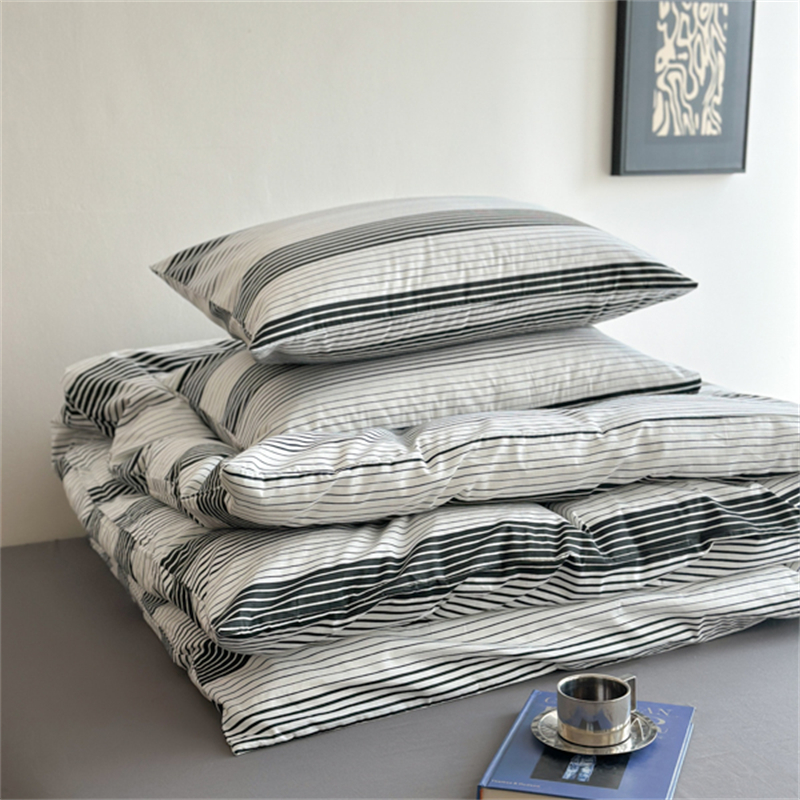 当前位置: 91家纺网 > 商品网购 > 床品套件 > 四件套 > 全棉普通四件套 > 金丝鸟家纺 2025新款全棉斜纹印花条纹系列四件套及单品 追忆灰