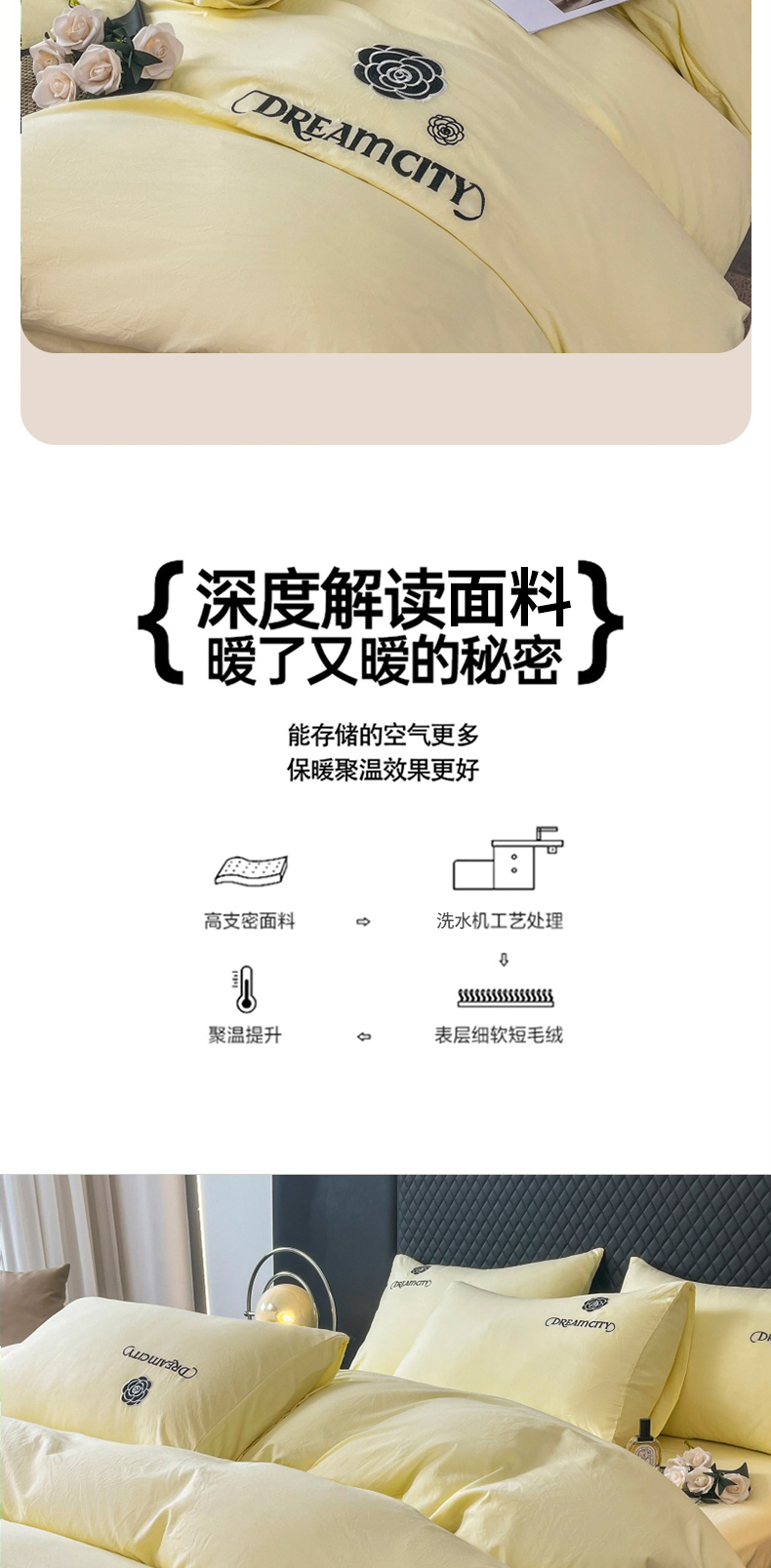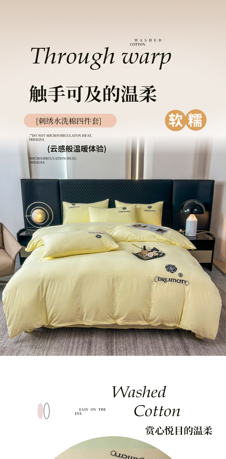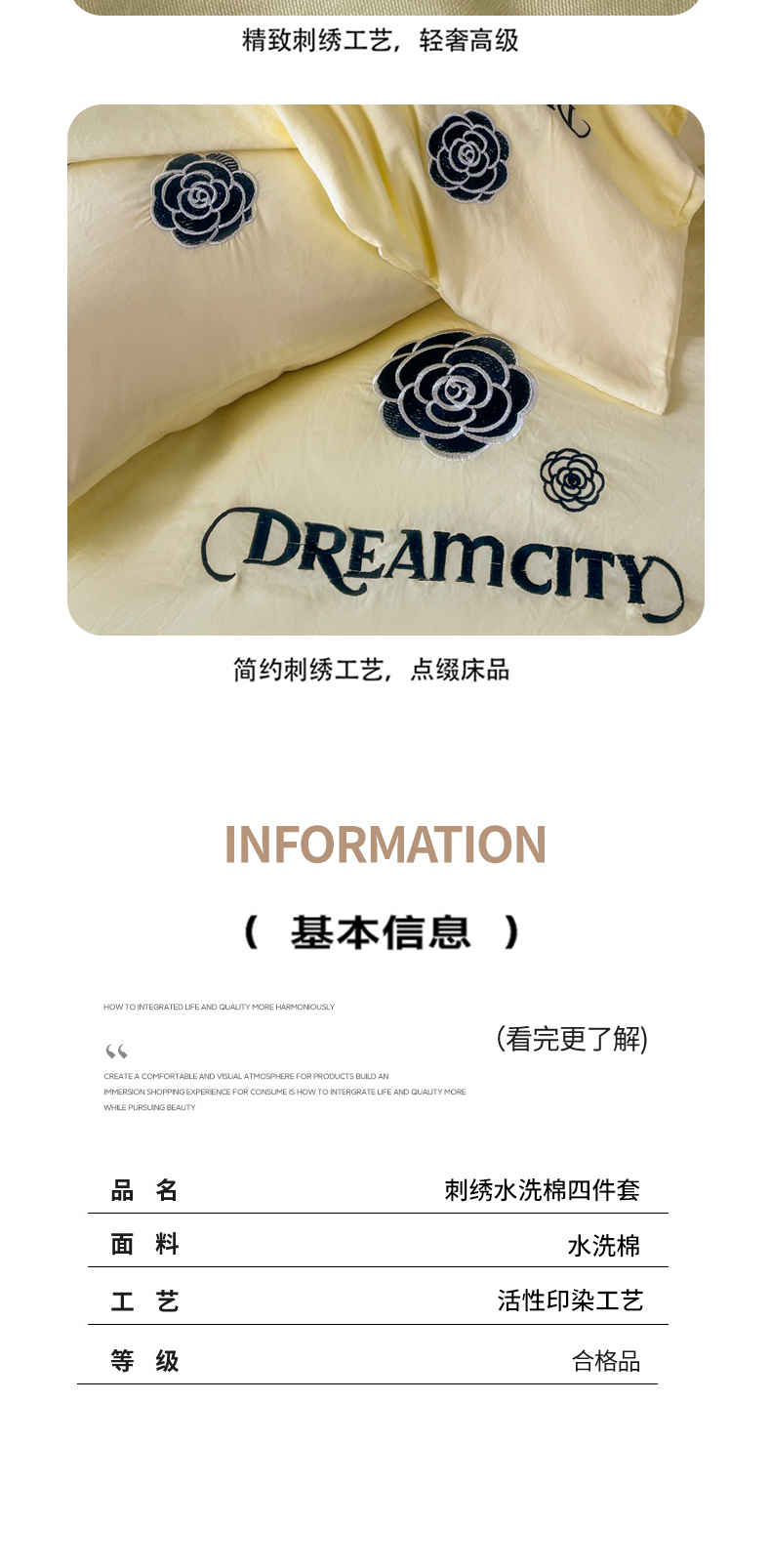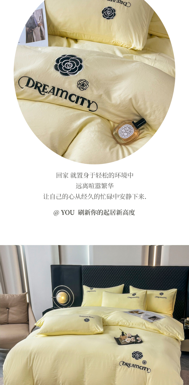 当前位置: 91家纺网 > 商品网购 > 床品套件 > 四件套 > 水洗棉四件套 > 麒东家纺 2025新款刺绣水洗棉四件套山茶花系列 奶油