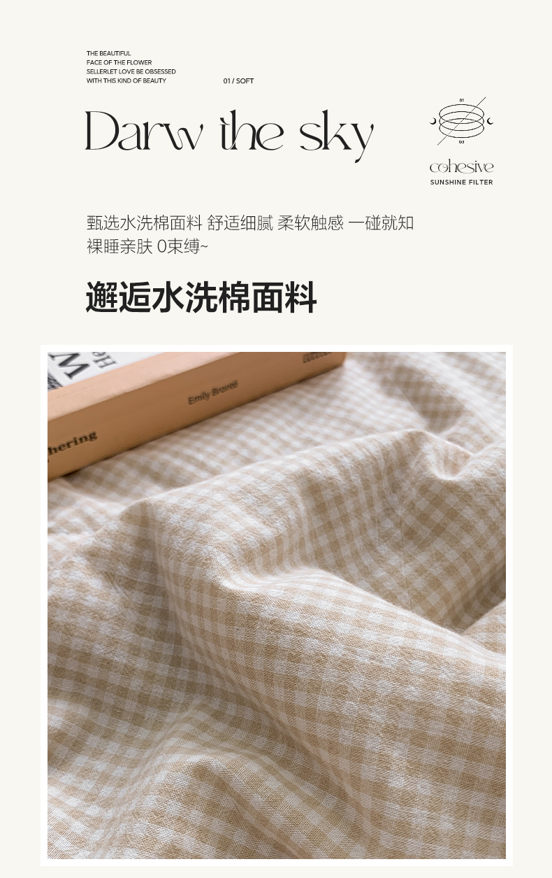 (总)水洗的故事 2025新款全棉色织水洗棉四件套,简序-粉,简序-灰,简序-蓝,简序-米黄,绿韵,樱织,云汐,紫韵粉格