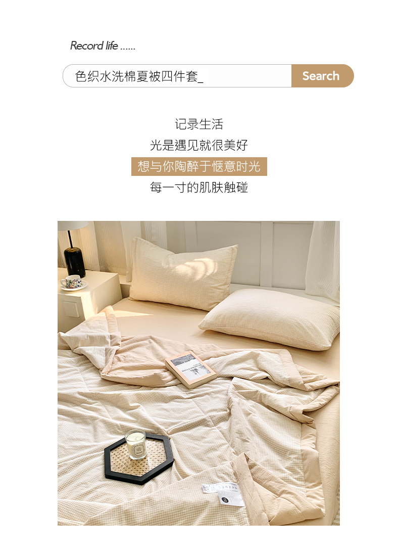 • 91家纺网 家纺一手货源 找家纺 水洗的故事 2025新款全棉色织水洗棉夏被&四件套 暗粉格