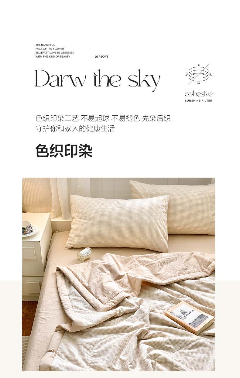 当前位置: 91家纺网 > 商品网购 > 被子 > 夏被 > 水洗的故事 2025新款全棉色织水洗棉夏被&四件套 暗粉格