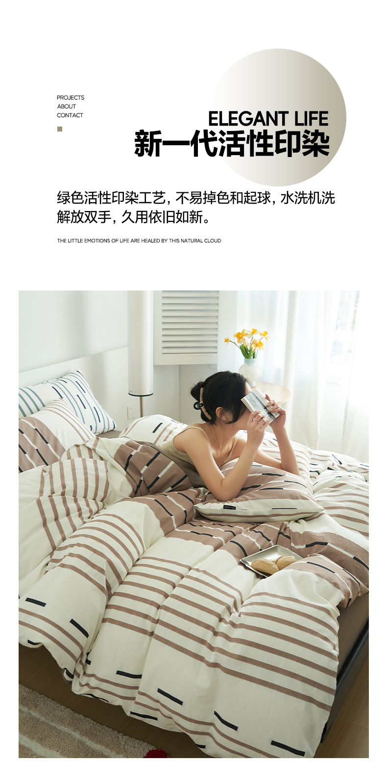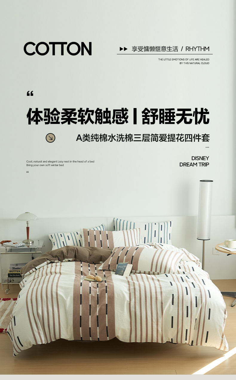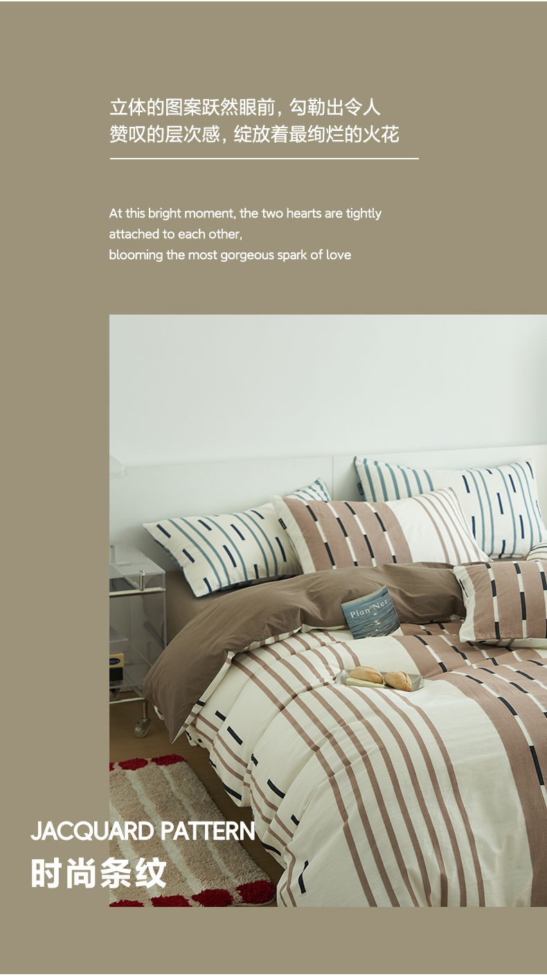 2025新款纯棉水洗棉三层提花简爱四件套 简爱四件套-咖色