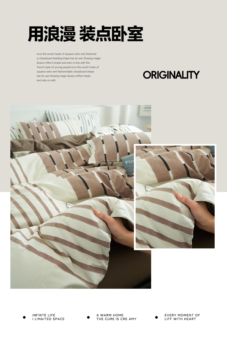 商品名称:2025新款纯棉水洗棉三层提花简爱四件套 简爱四件套-咖色