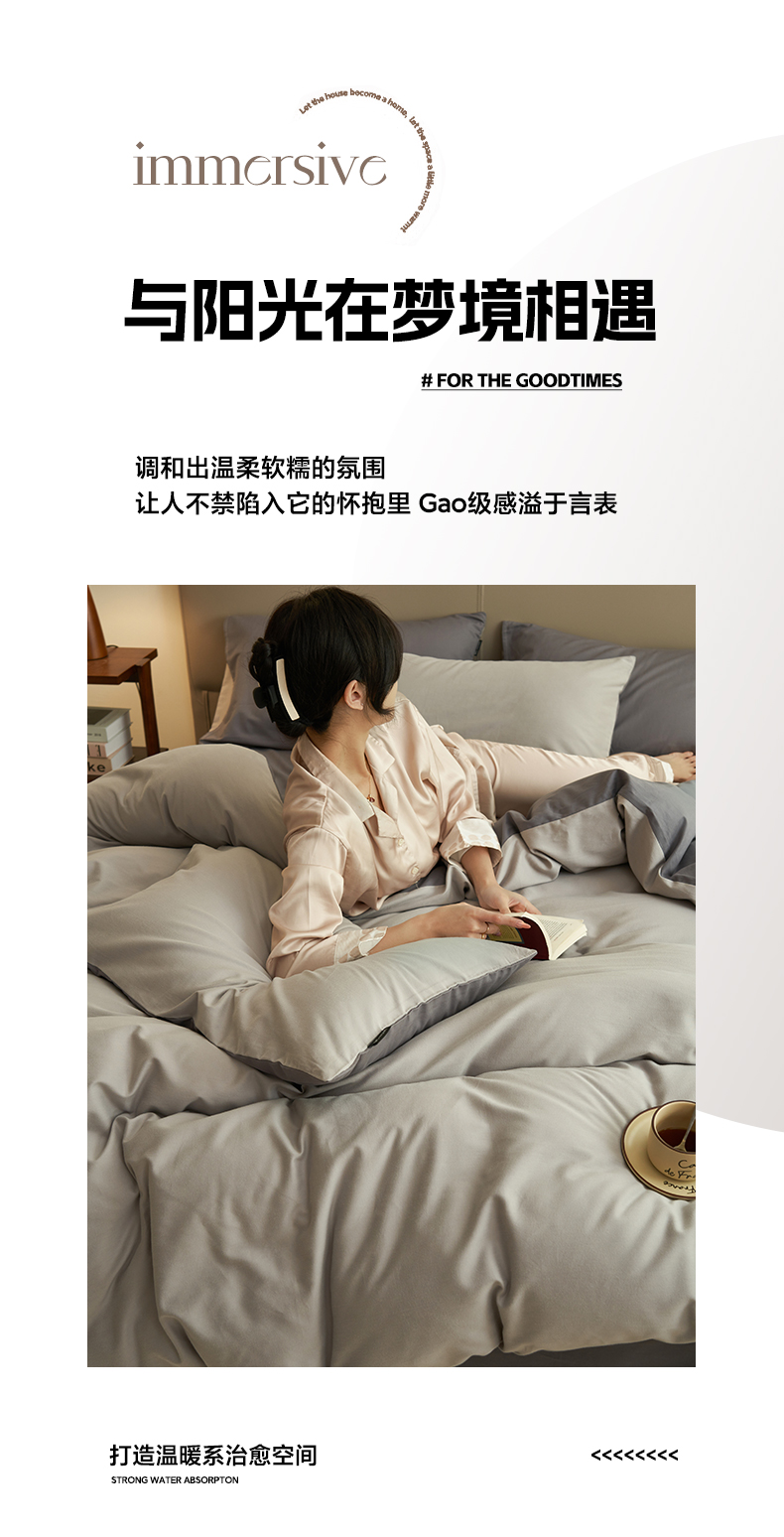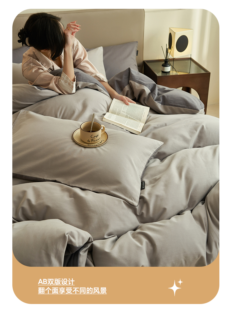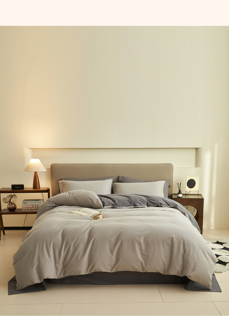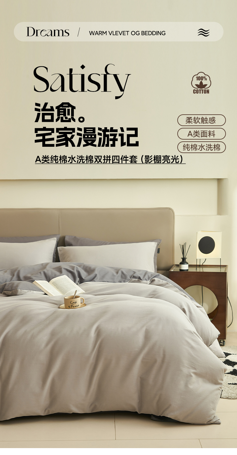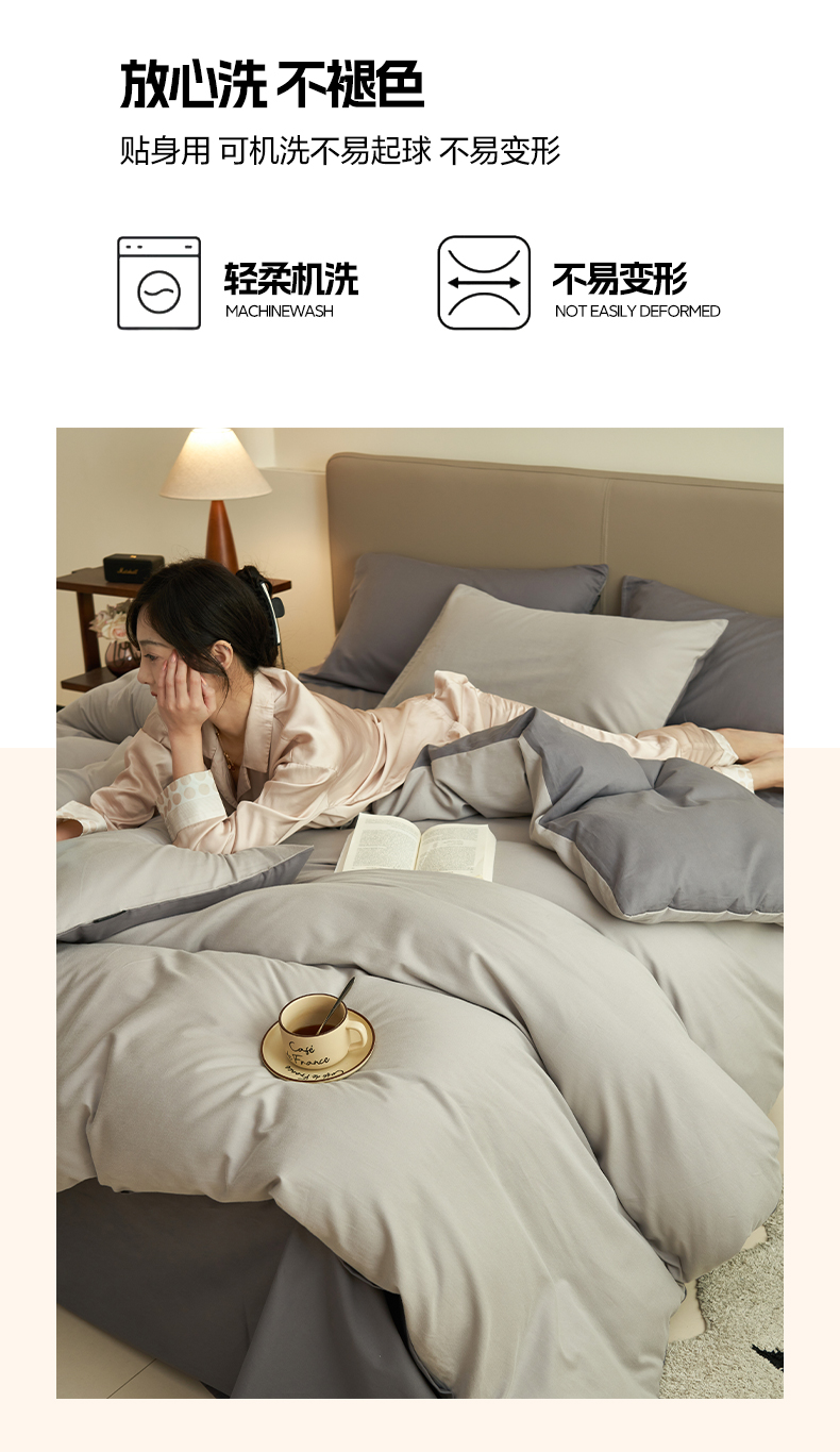 商品名称:2025新款全棉13372水洗棉双拼四件套(影棚亮光) 毛毯灰+宝藏灰