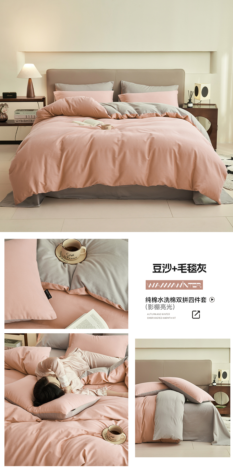 (总)2025新款全棉13372水洗棉双拼四件套(影棚暗光),天青韵白+拾柴,40暖木棕+拾柴,40驼+40暖木棕,安然蓝+毛毯灰,暗木幽香+宝藏灰,暗香紫砂+40驼,布鲁兰+拾柴,春风十里+浮生一梦,豆沙+毛毯灰,扶苏绿+毛毯灰,果绿+墨子绿,礁石灰+毛毯灰,漫雾+古巴砂,毛毯灰+宝藏灰,蘑菇黄+天青韵白,碳烤栗子+拾柴,天蓝+米黄,天青韵白+一念秋风,一叶知秋+袅袅灰,樱木粉+一念秋风