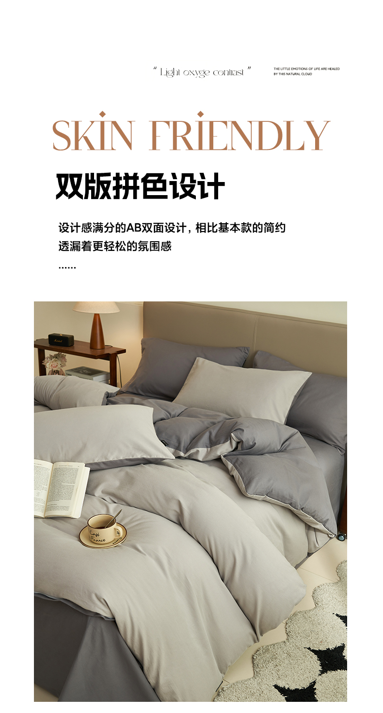 2025新款全棉13372水洗棉双拼四件套(影棚亮光) 毛毯灰+宝藏灰