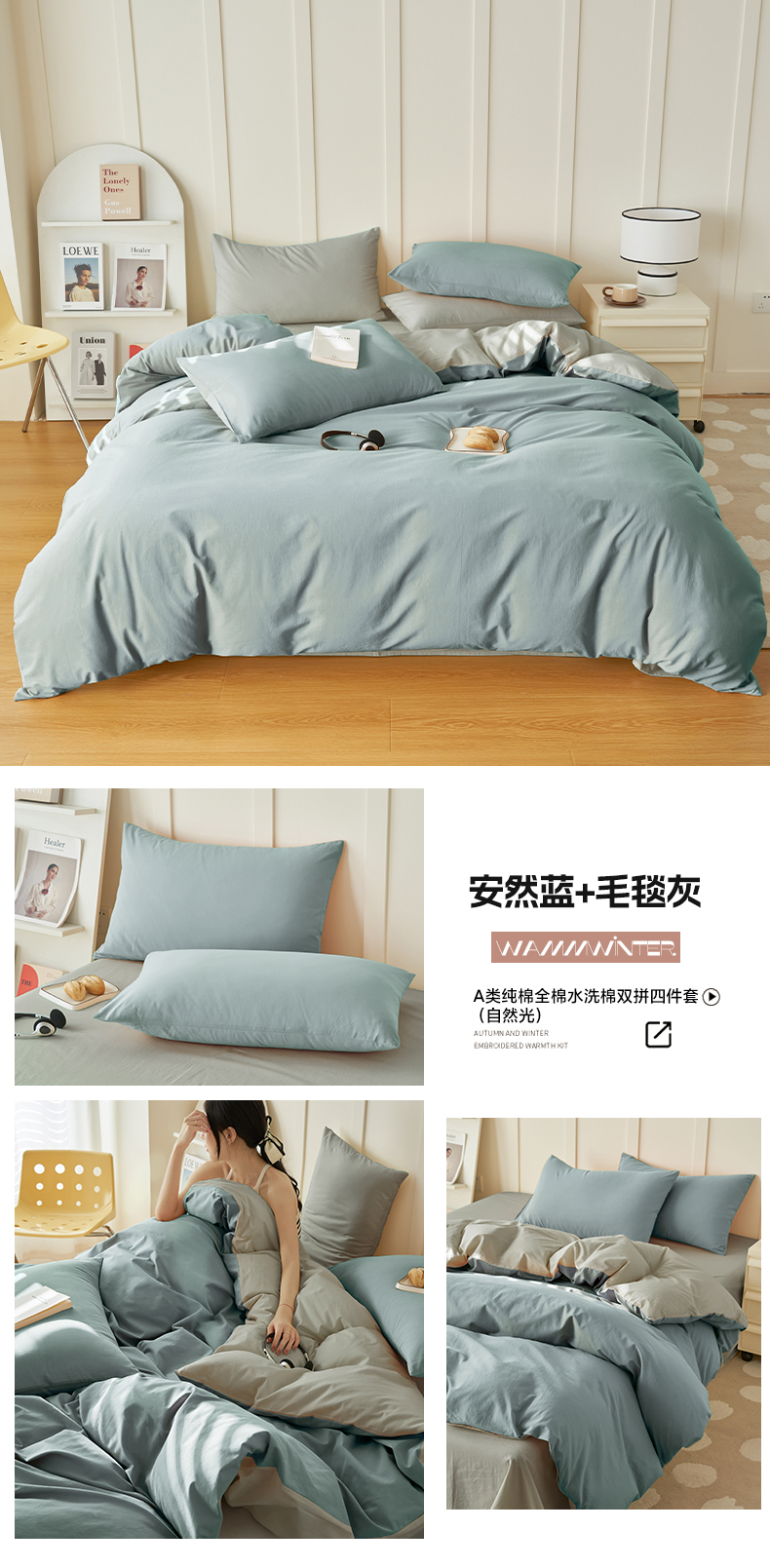 (总)2025新款全棉13372水洗棉双拼四件套(影棚暗光),天青韵白+拾柴,40暖木棕+拾柴,40驼+40暖木棕,安然蓝+毛毯灰,暗木幽香+宝藏灰,暗香紫砂+40驼,布鲁兰+拾柴,春风十里+浮生一梦,豆沙+毛毯灰,扶苏绿+毛毯灰,果绿+墨子绿,礁石灰+毛毯灰,漫雾+古巴砂,毛毯灰+宝藏灰,蘑菇黄+天青韵白,碳烤栗子+拾柴,天蓝+米黄,天青韵白+一念秋风,一叶知秋+袅袅灰,樱木粉+一念秋风