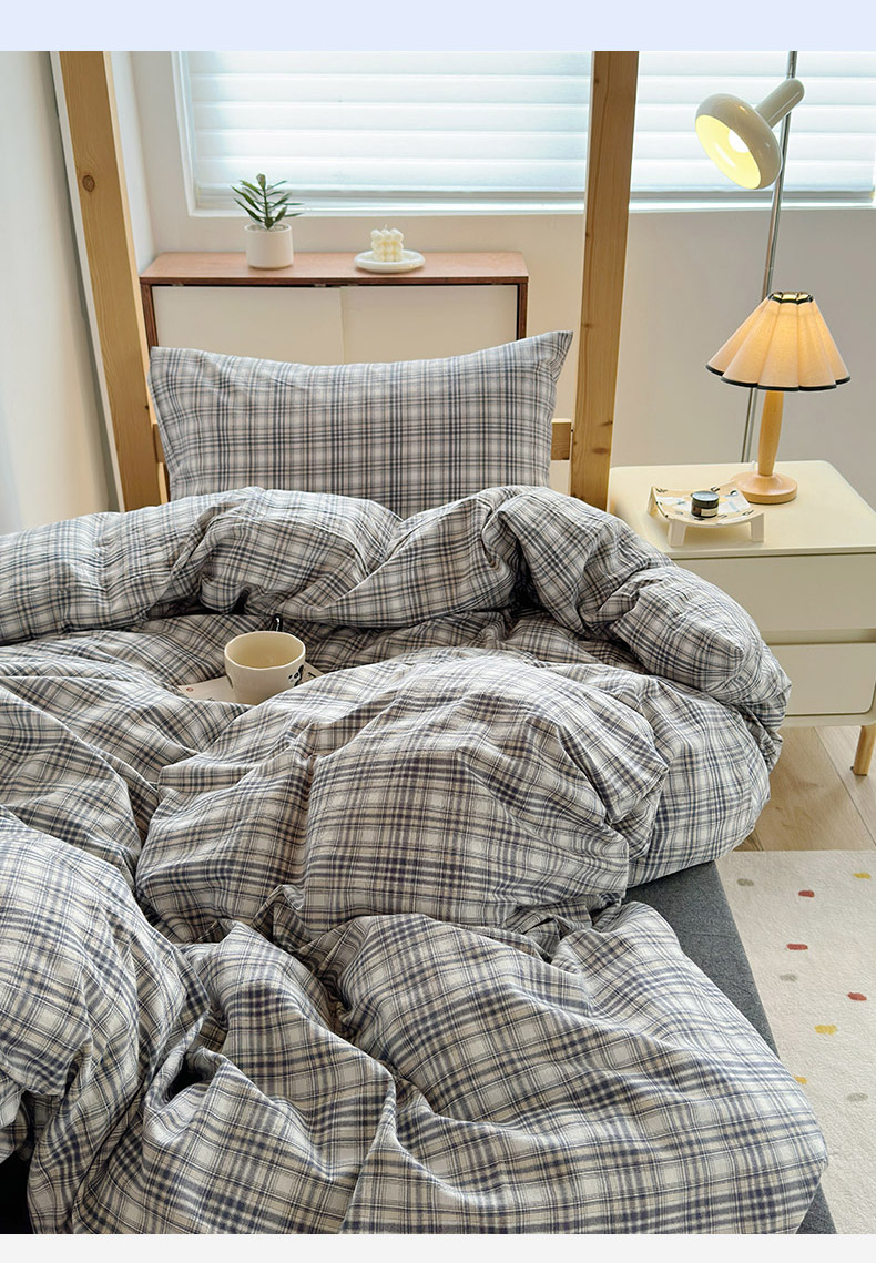 水洗的故事 2025新款A类色织水洗棉学生三件套 灰线格-