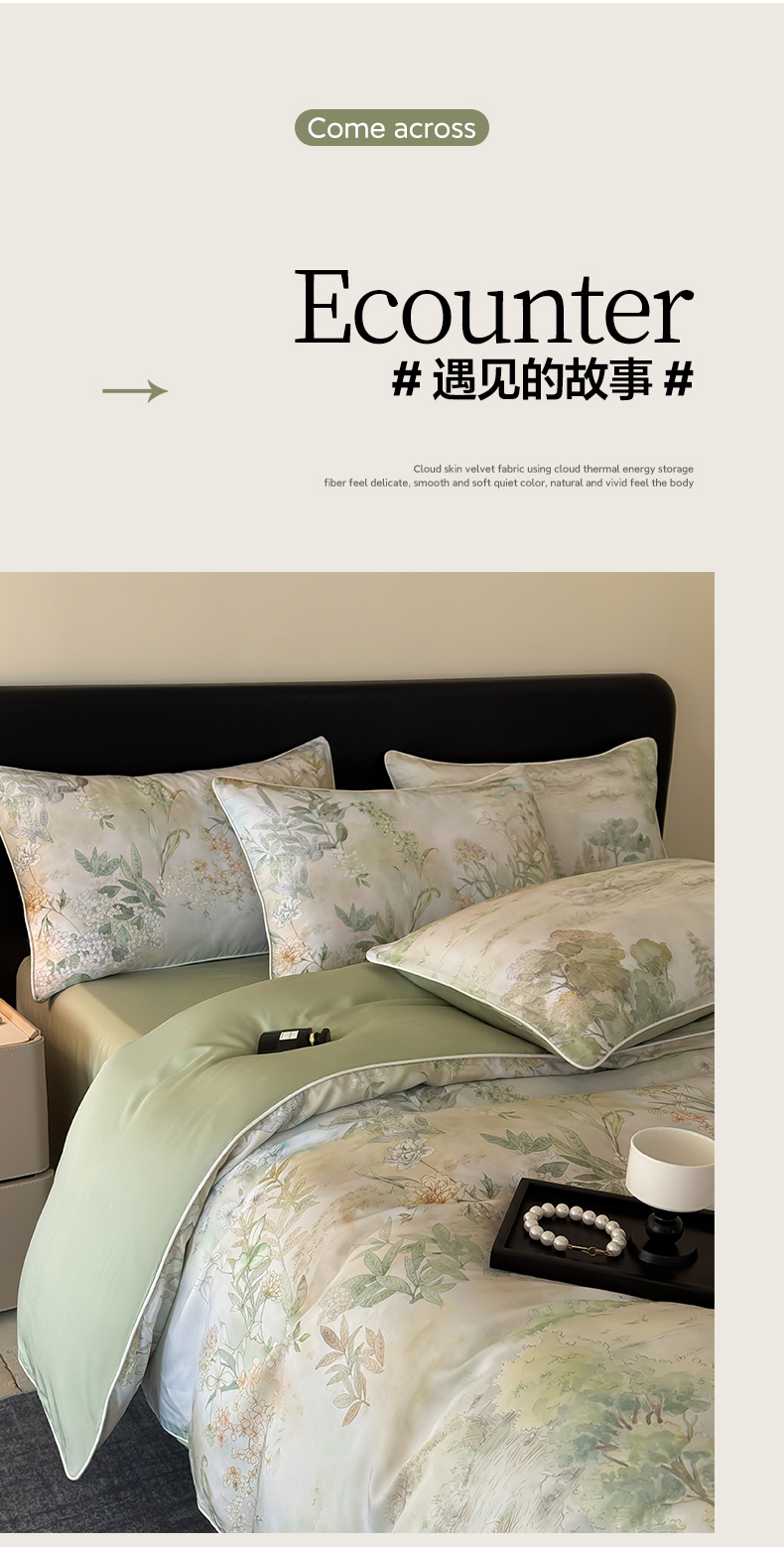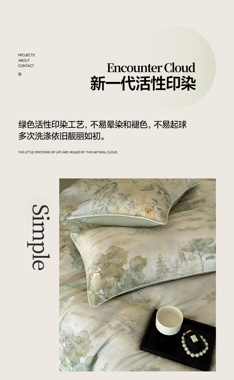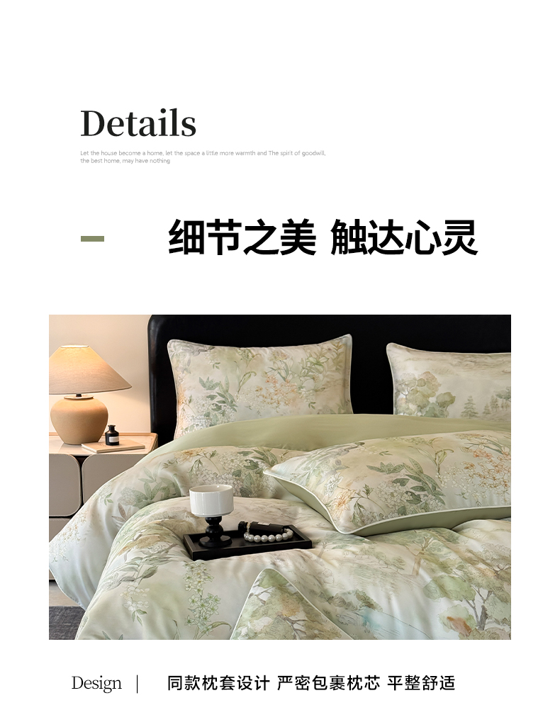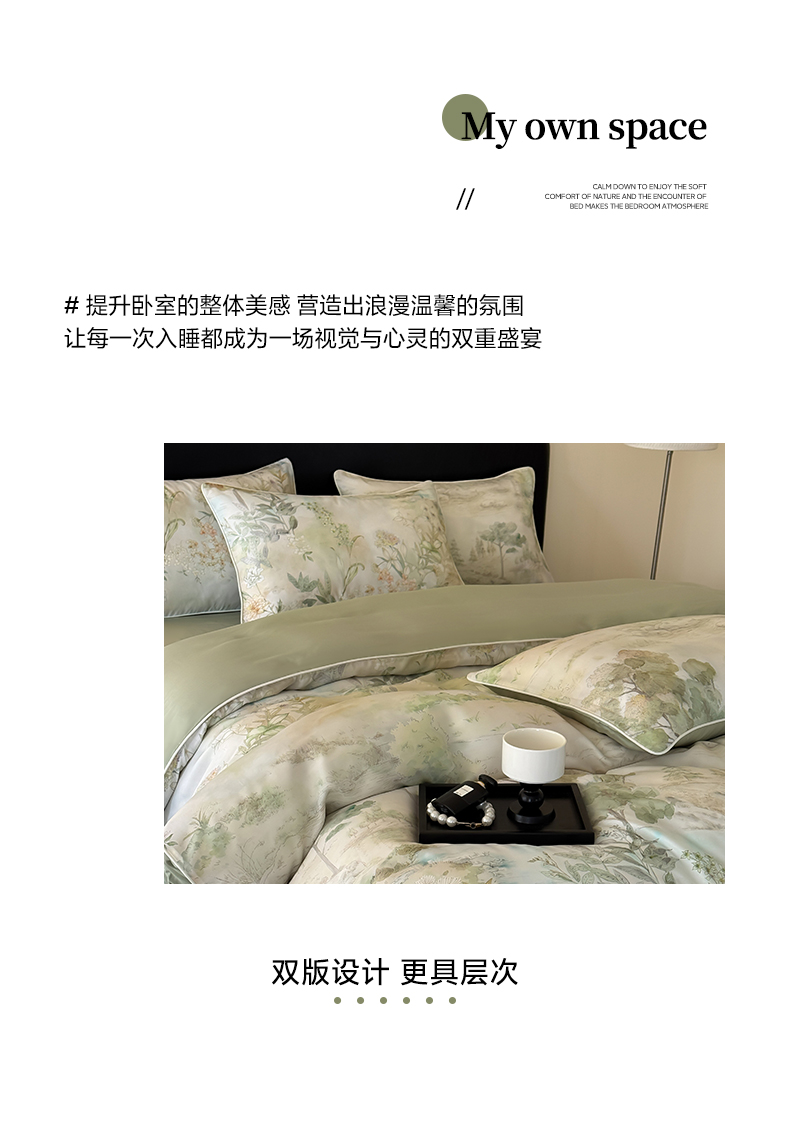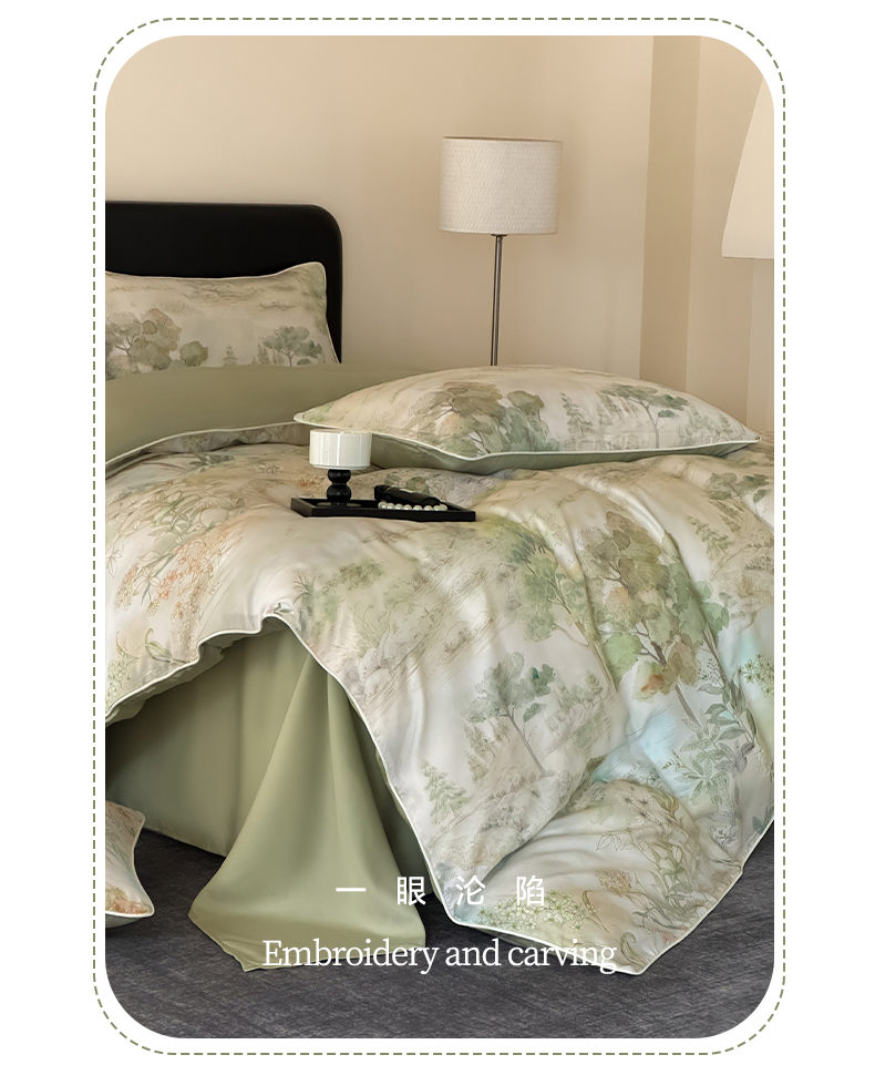 当前位置: 91家纺网 > 商品网购 > 床品套件 > 四件套 > 其它四件套 > 莱登卡奴 2025新款A类50支莱赛尔天丝数码印花麻绳款四件套 远山黛绿