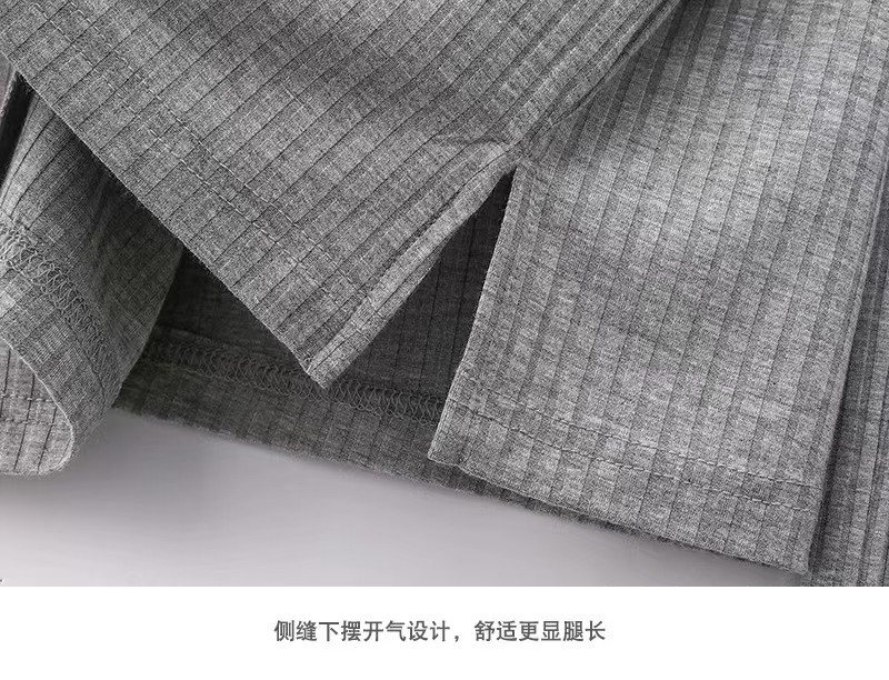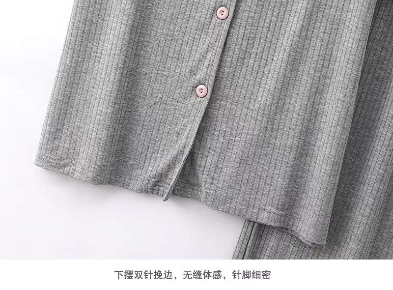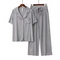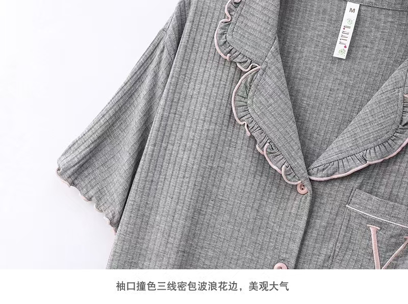 洛兰沙家居馆【只代发】【只代发】 2025新款外贸欧美风8*5宽坑条莫代尔睡衣女春夏秋开衫翻领短袖长裤家居服 浅灰