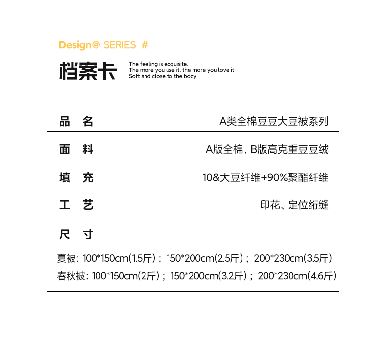填充纤维种类: 大豆蛋白改性聚酯纤维