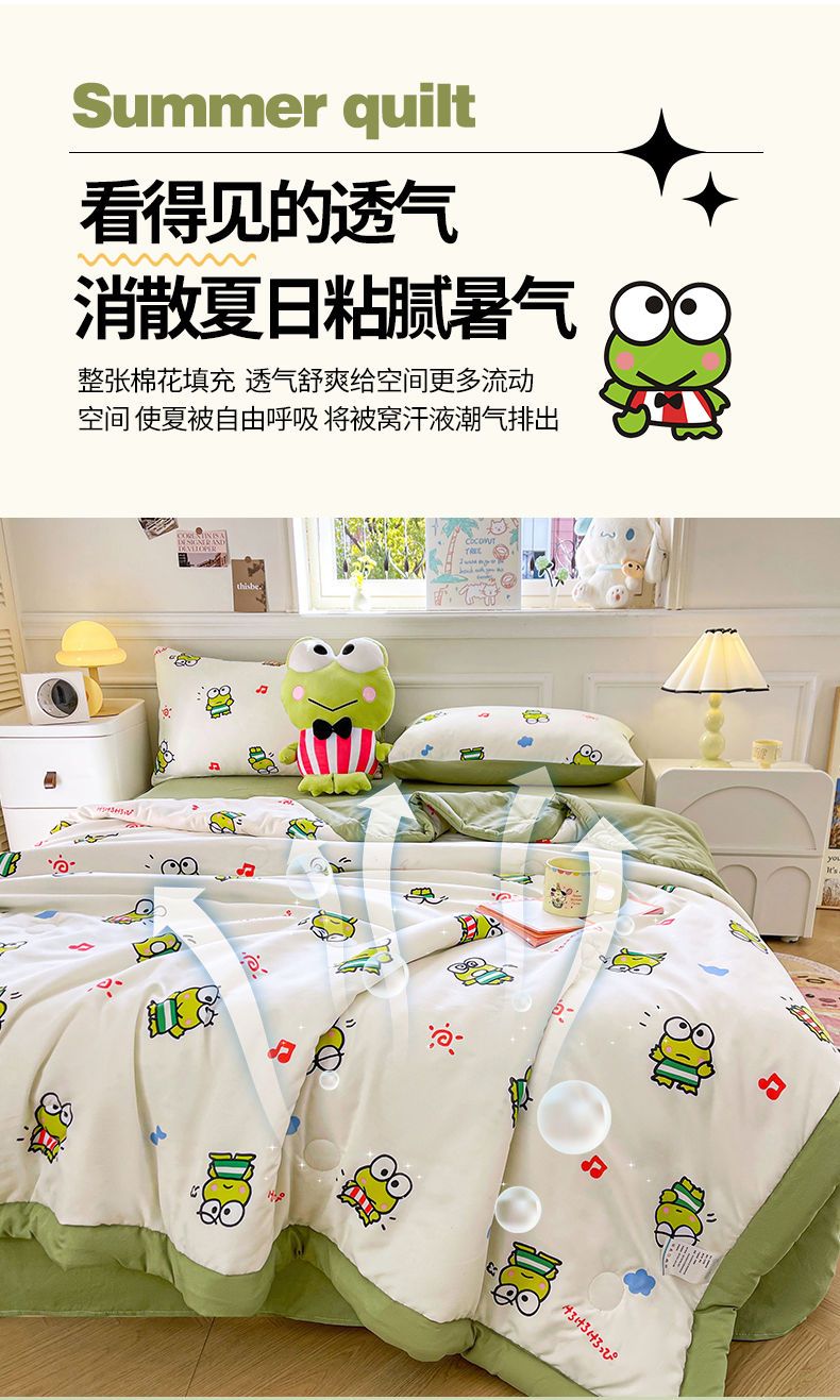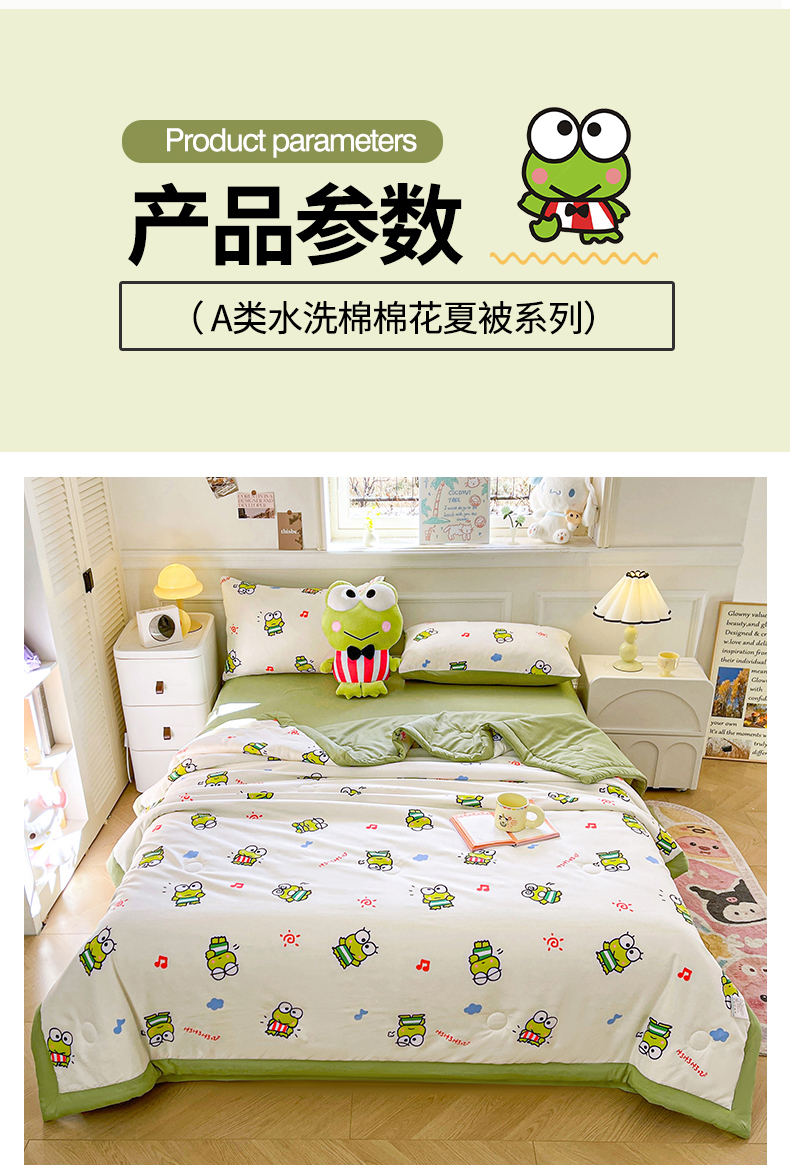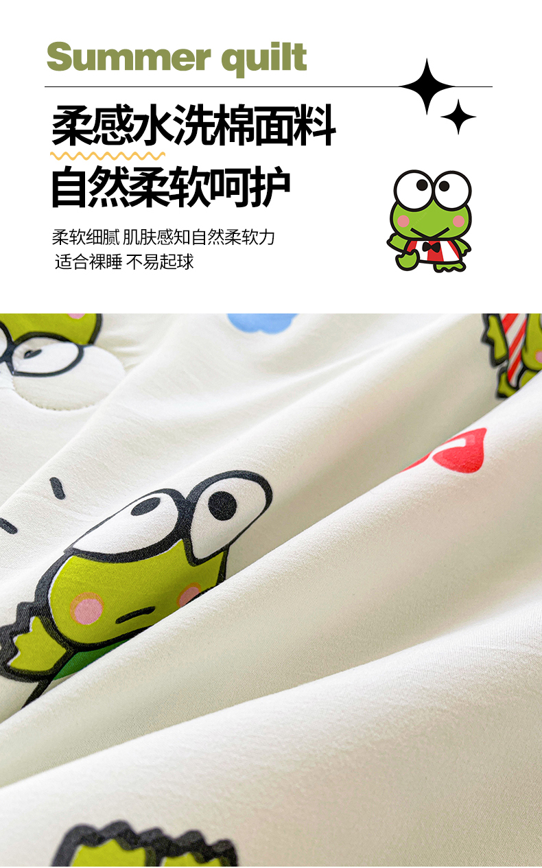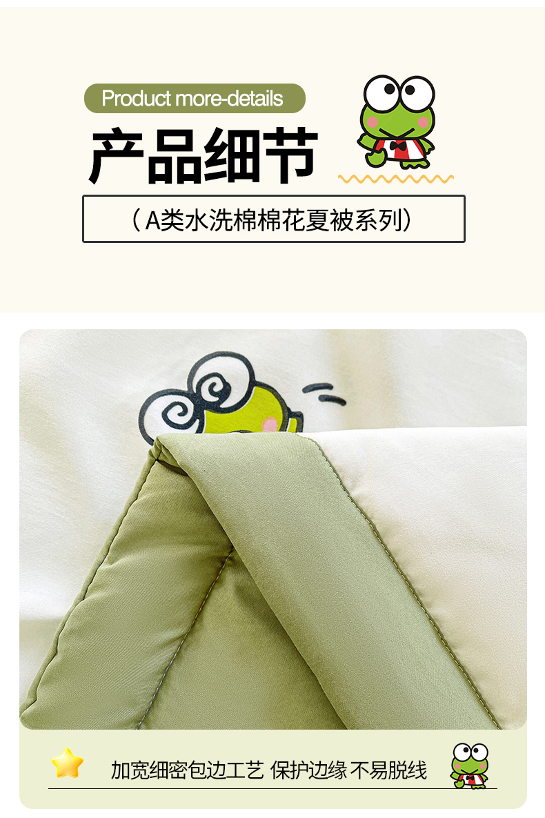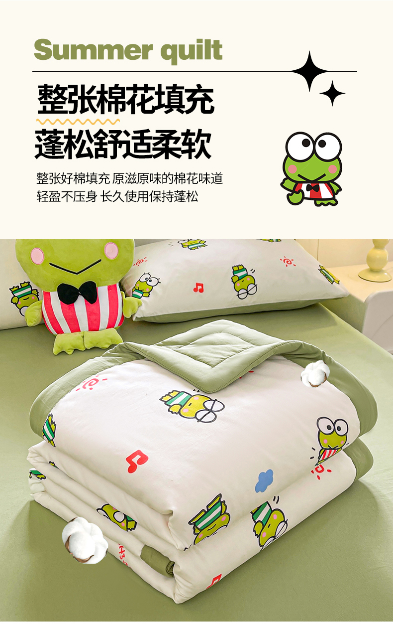 商品名称:晓时候 2025新款正版授权三丽鸥水洗棉夏被新疆棉花被夏凉被空调薄被子 呆萌小蛙