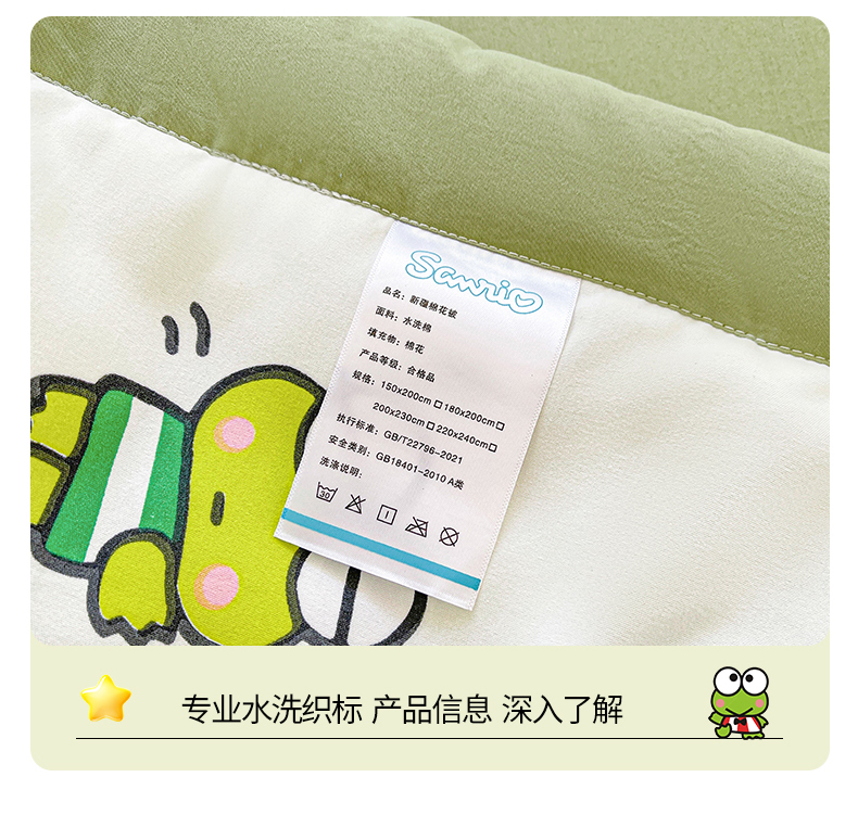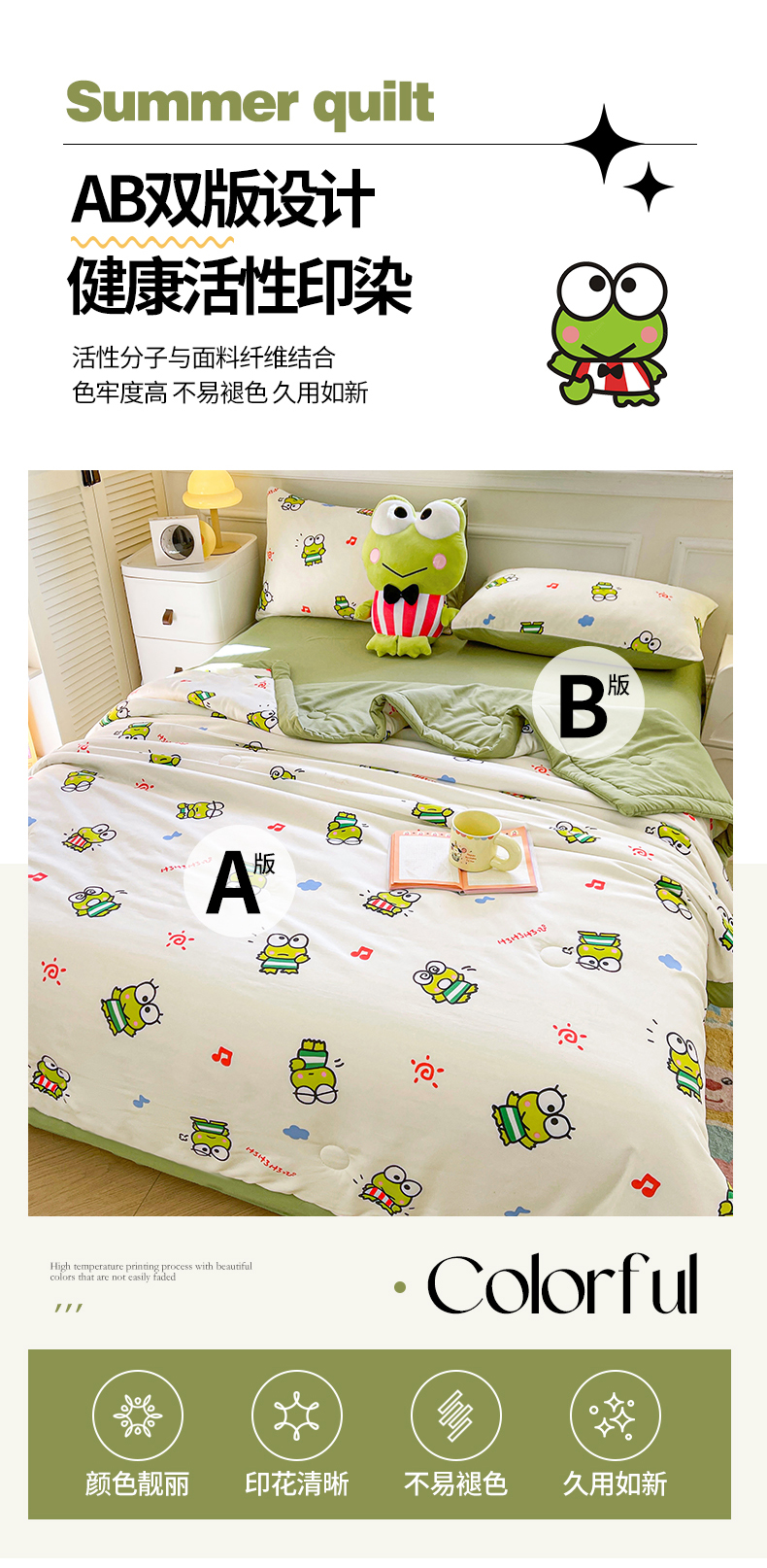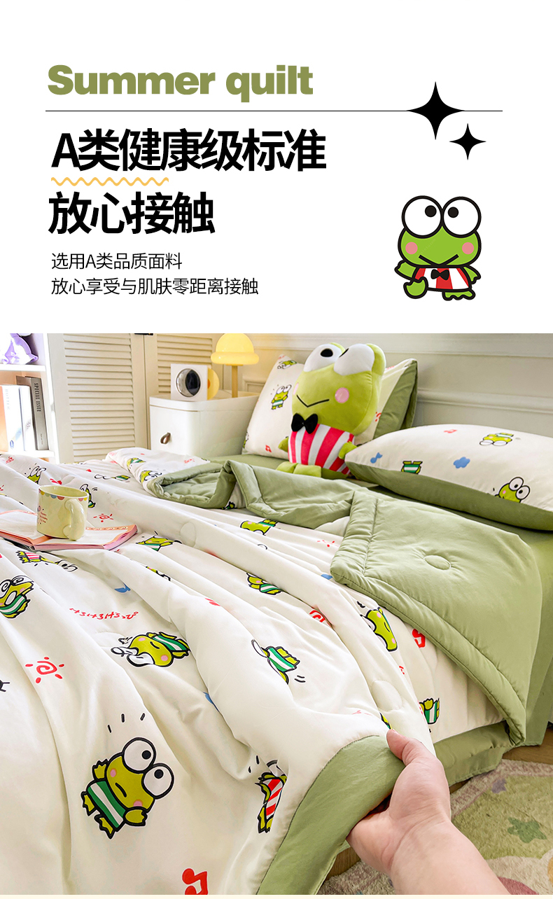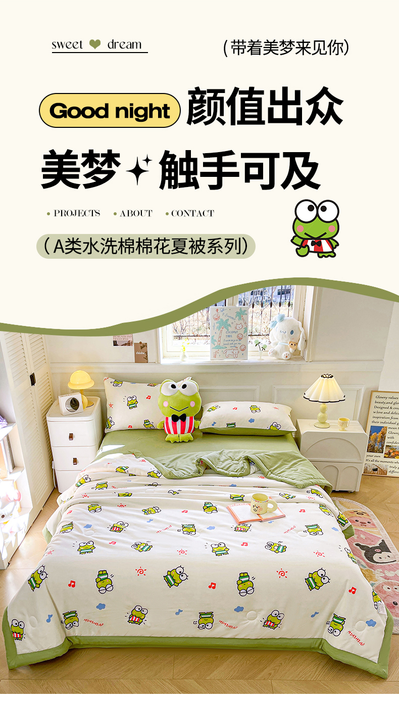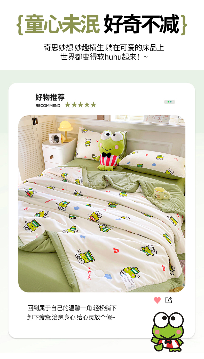 商品名称:晓时候 2025新款正版授权三丽鸥水洗棉夏被新疆棉花被夏凉被空调薄被子 呆萌小蛙