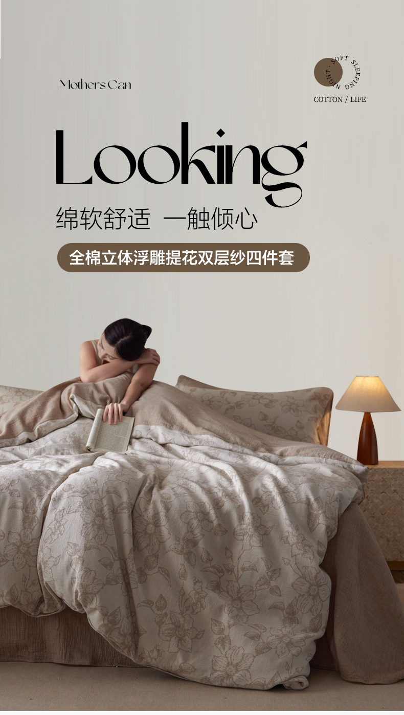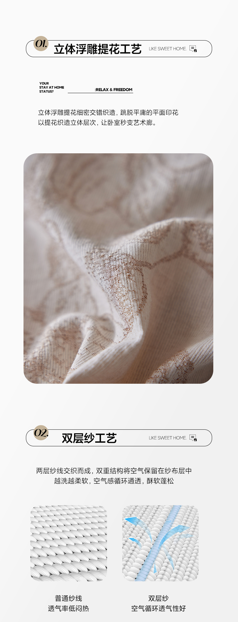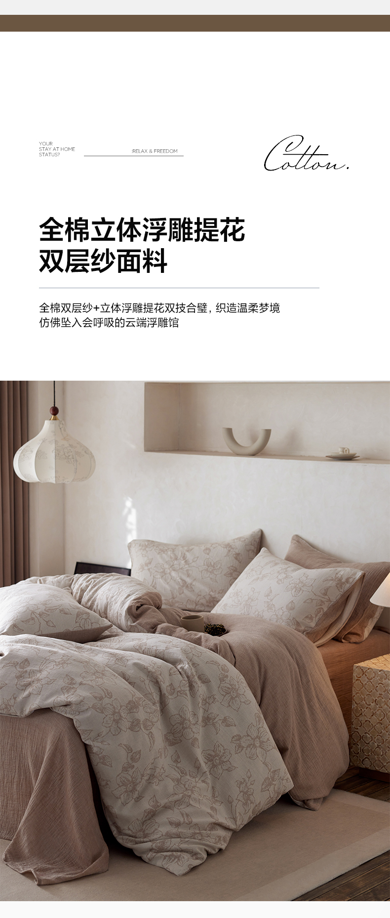 当前位置: 91家纺网 > 商品网购 > 床品套件 > 四件套 > 双层纱四件套 > 艾咪 新款全棉立体浮雕提花双层纱四件套-莫尼特咖