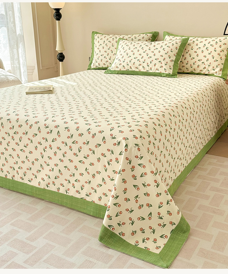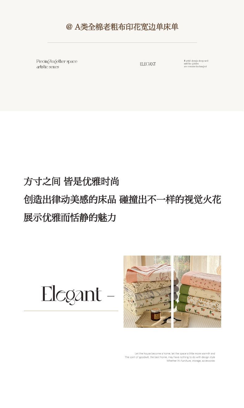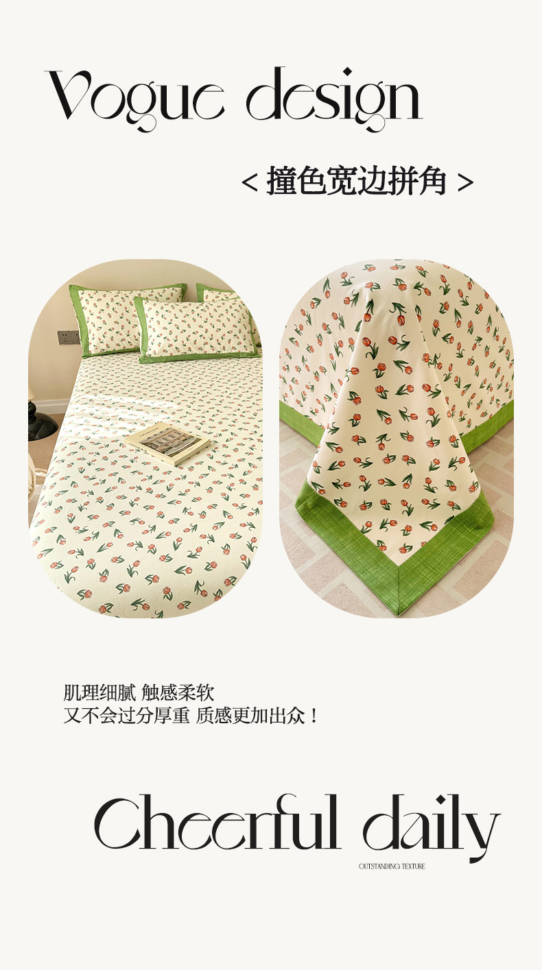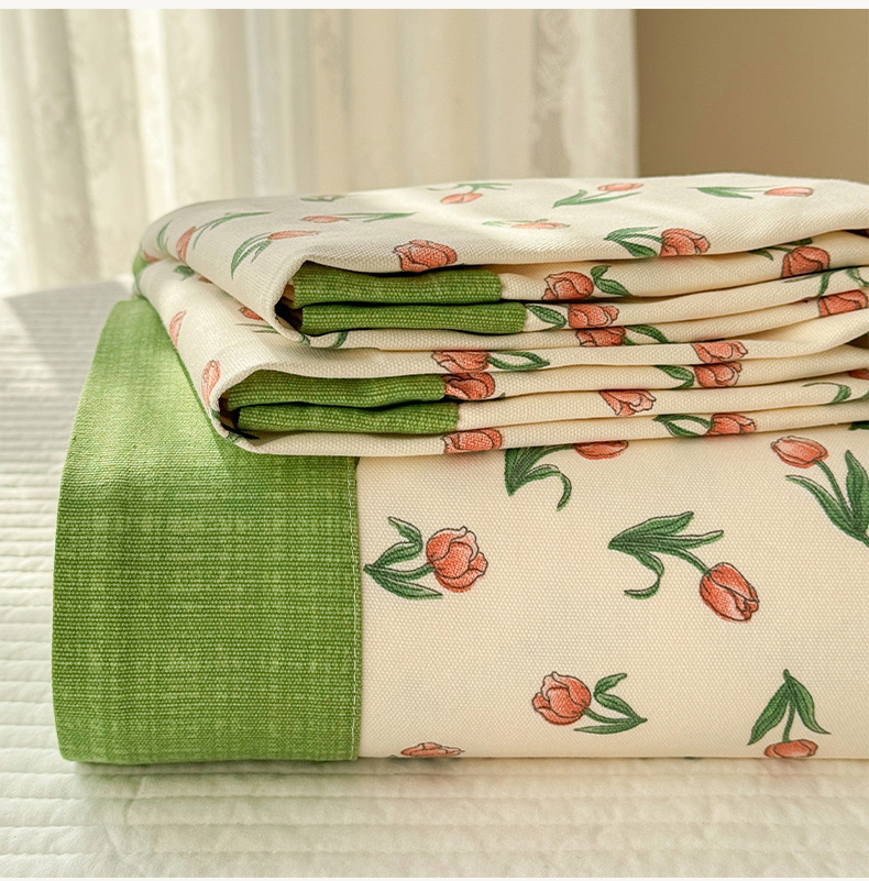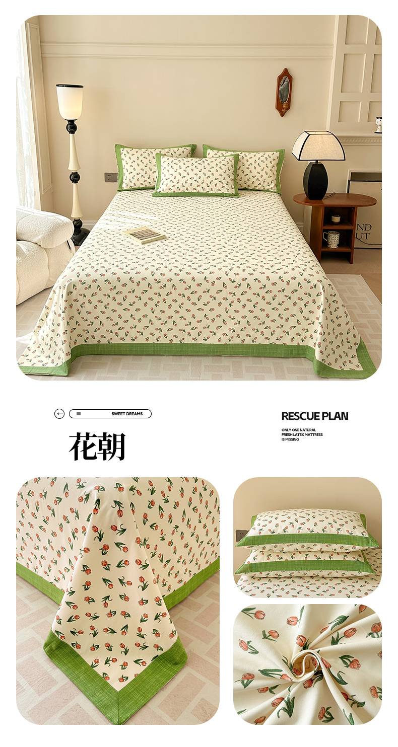 • 91家纺网 家纺一手货源 找家纺 蓝邻家纺 2025新款100%新疆原棉粗布小清新拼角工艺款系列单床单 花朝