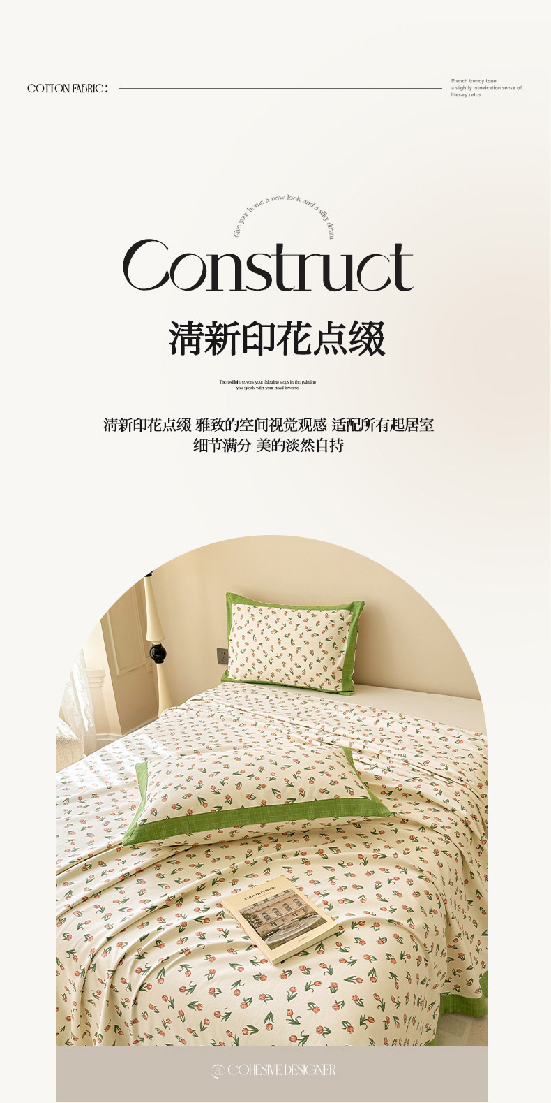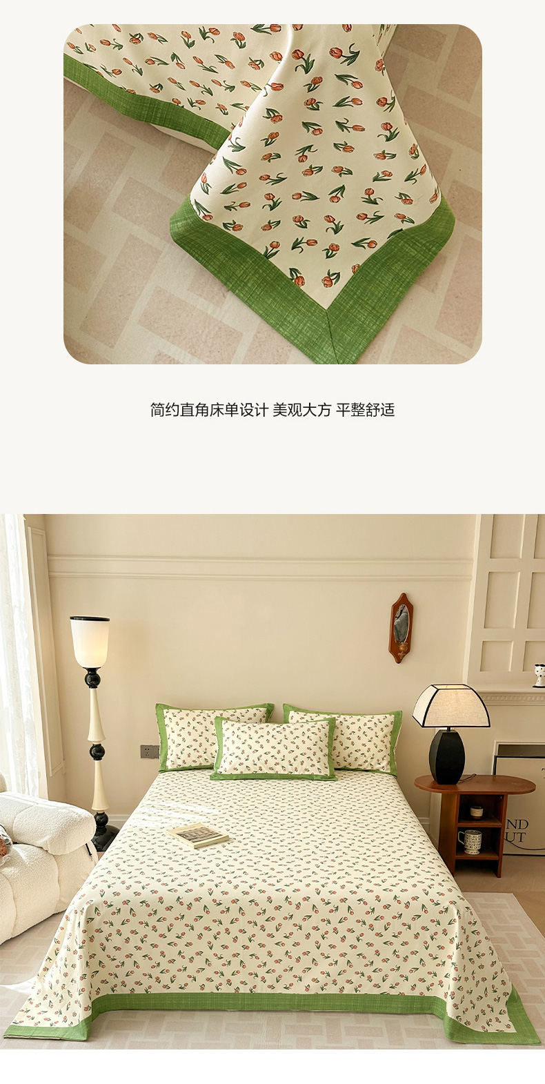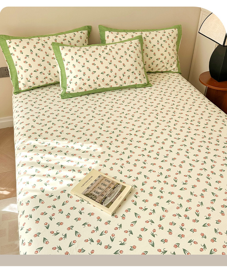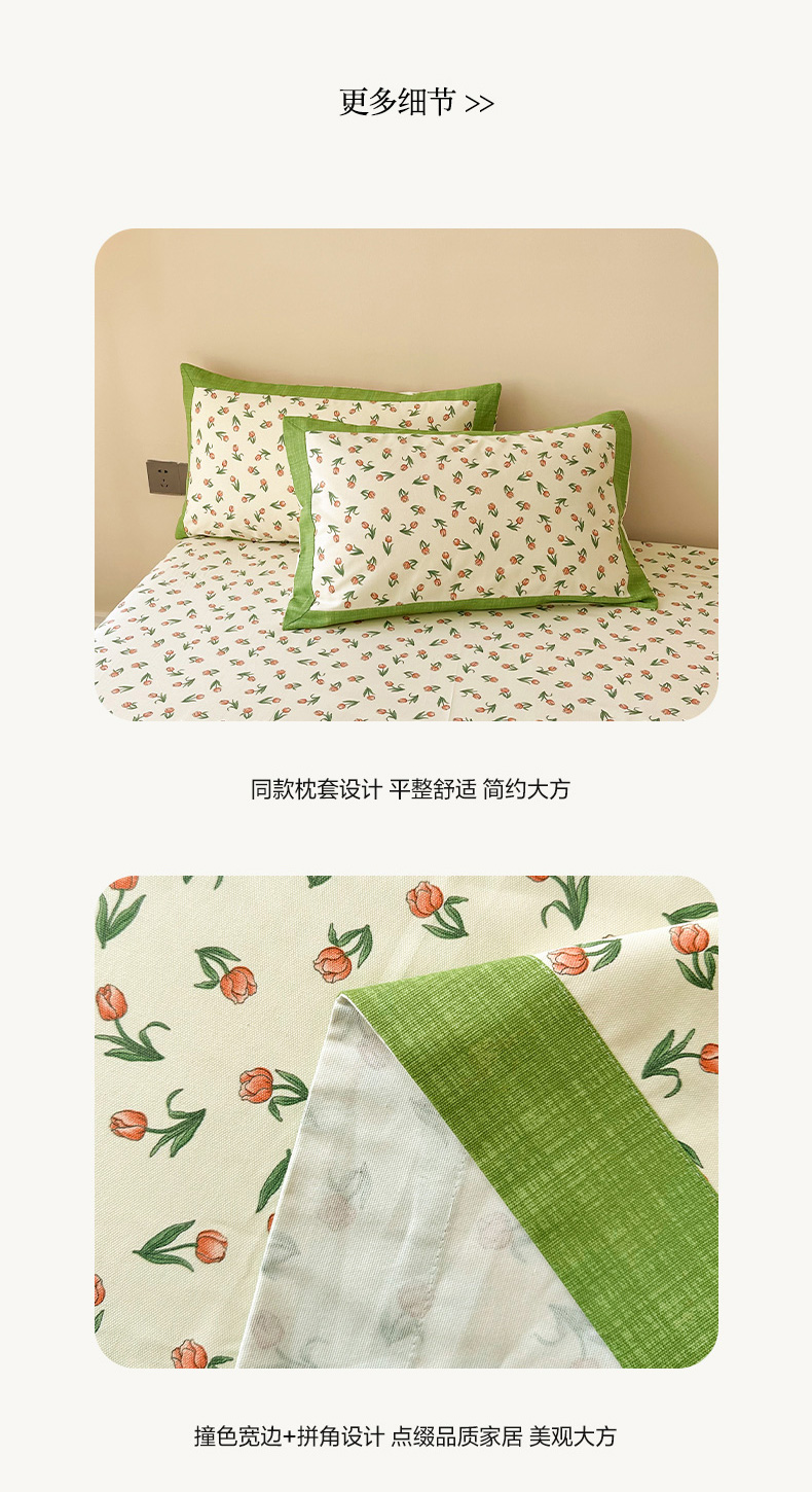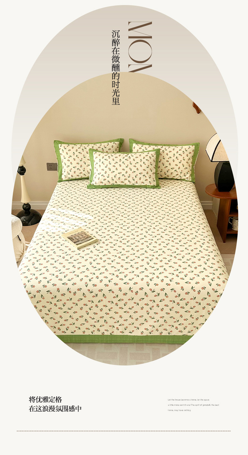 • 91家纺网 家纺一手货源 找家纺 蓝邻家纺 2025新款100%新疆原棉粗布小清新拼角工艺款系列单床单 花朝