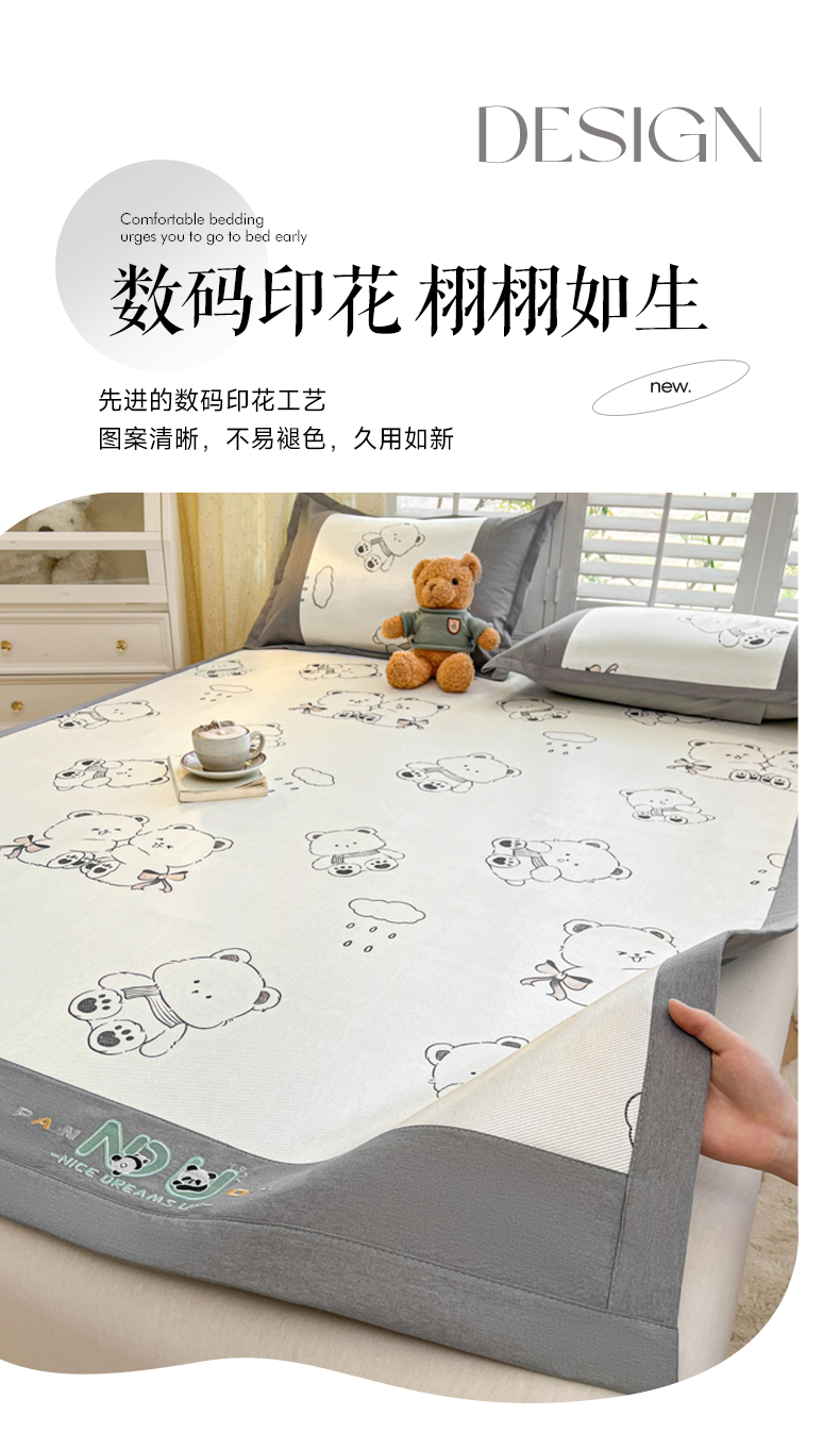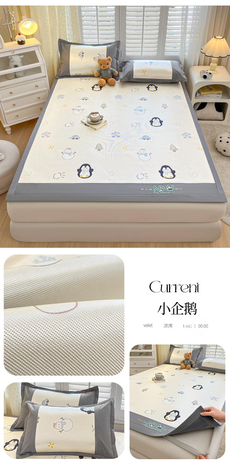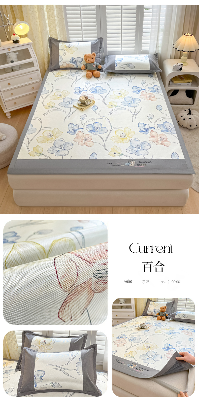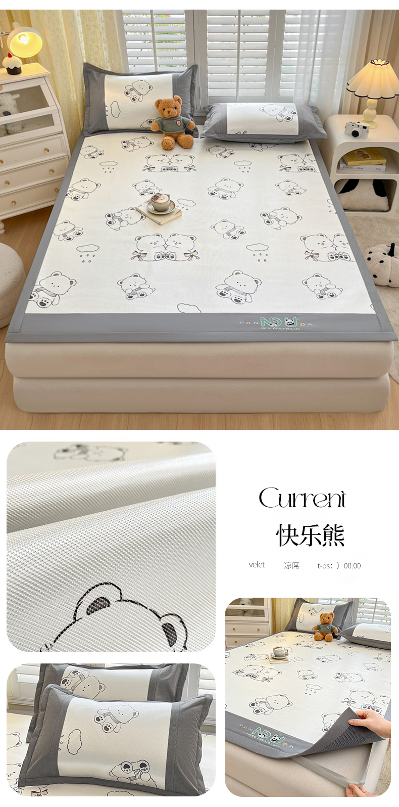 (总)航途席业 2025新款印花冰藤席凉席-成人款, 快乐熊,新百合,小兰花,小企鹅