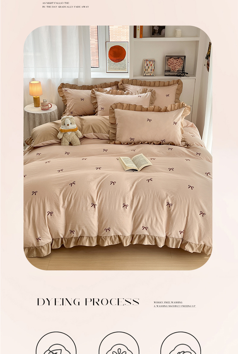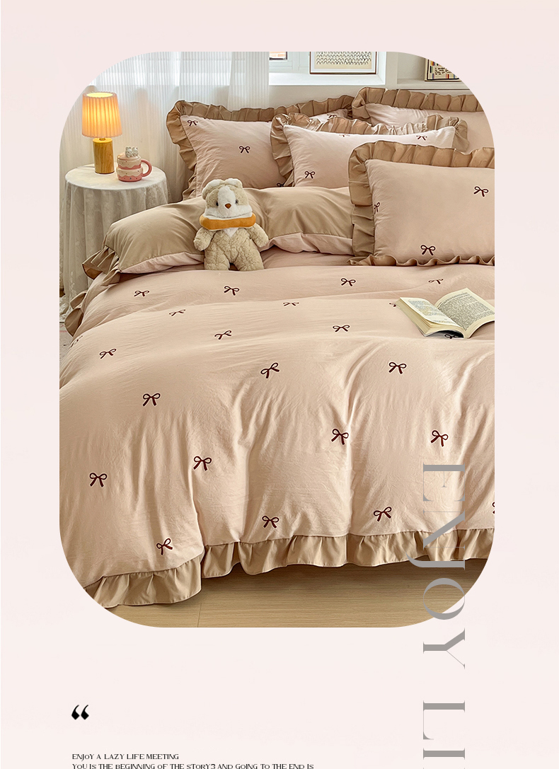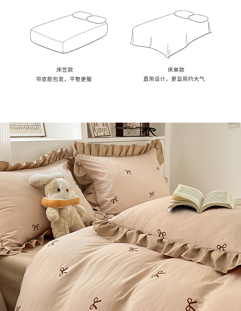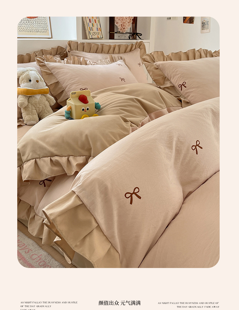 当前位置: 91家纺网 > 商品网购 > 床品套件 > 四件套 > 普通磨毛四件套 > 苏源家纺2025新款 公主风荷叶边亲肤棉磨毛四件套 绮梦-浅驼