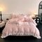 商品名称:米彩家纺 2025新款A类水洗真丝亮光浮雕花边四件套 粉玉