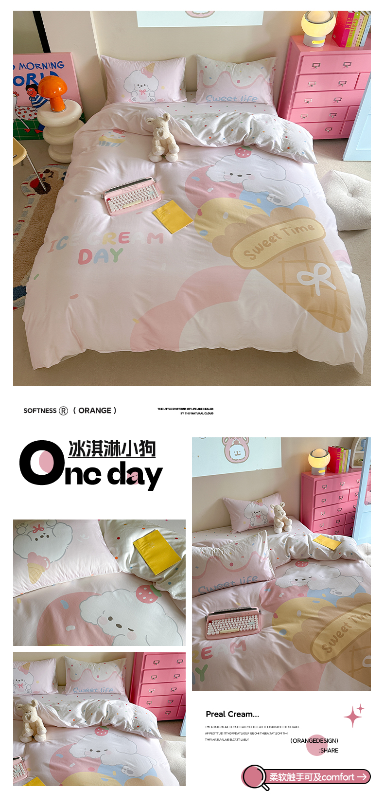 美乐迪家纺 2025新款大版全棉四件套 冰淇淋小狗