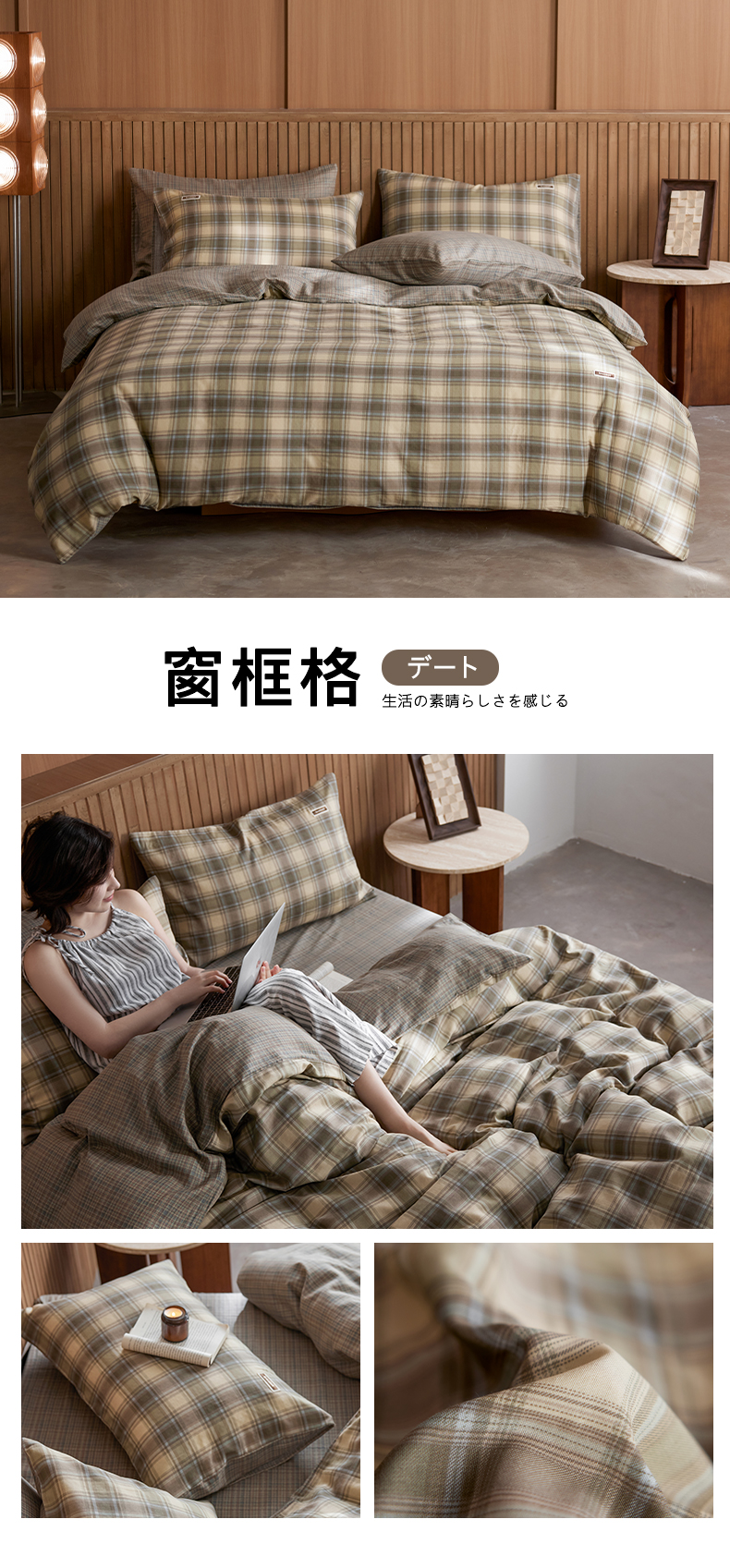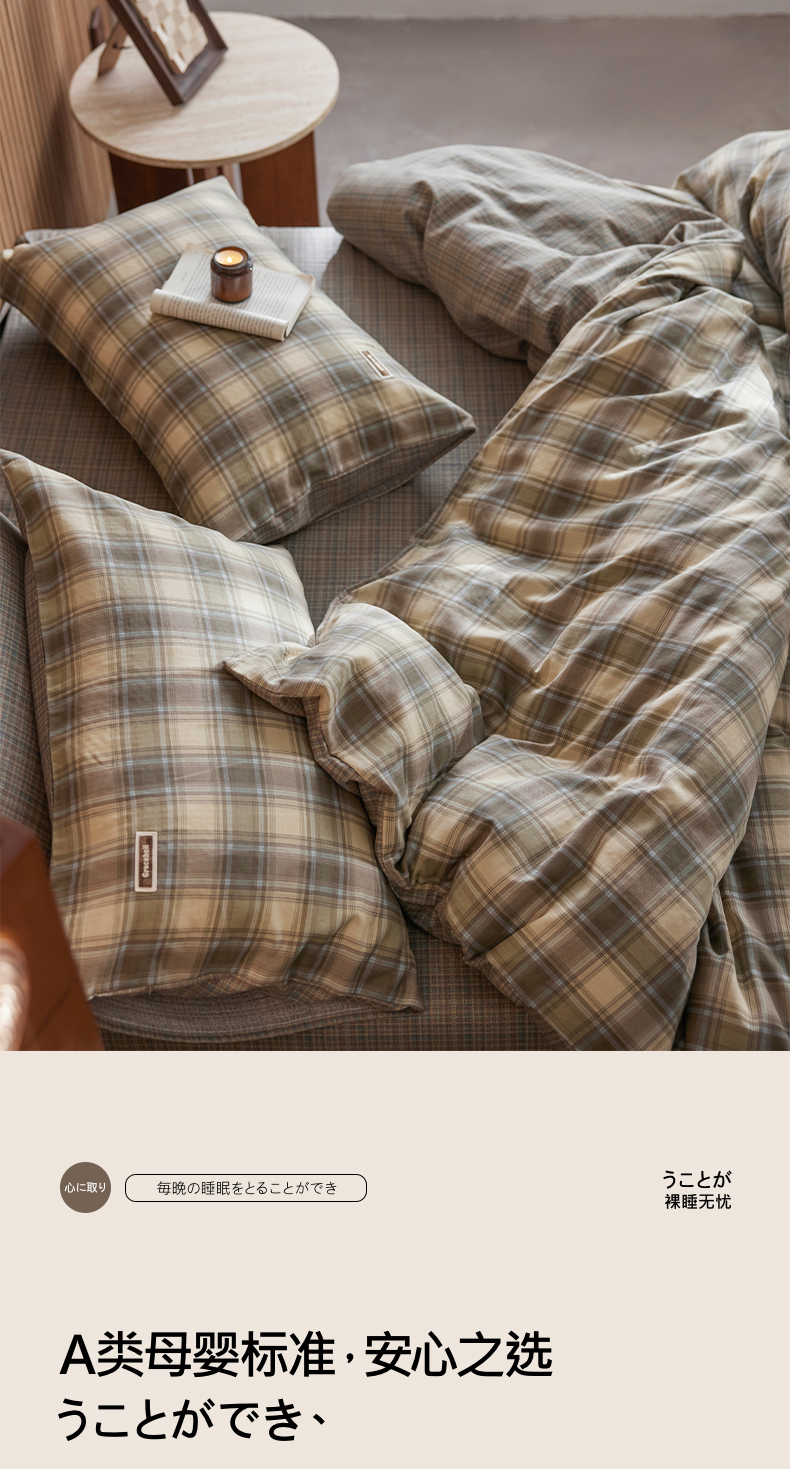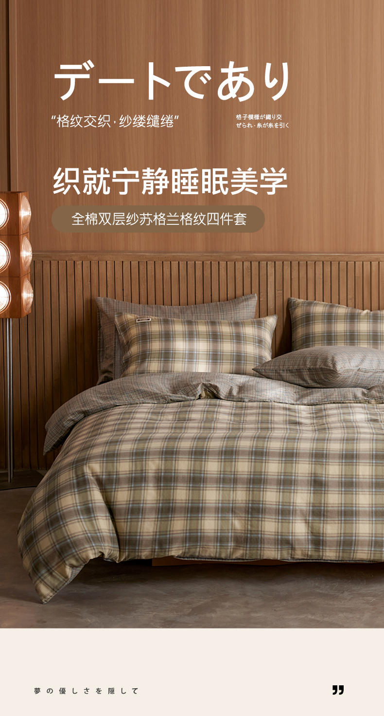 商品名称:安莱生活 2025 全棉双层纱苏格兰格纹系列四件套 窗框格