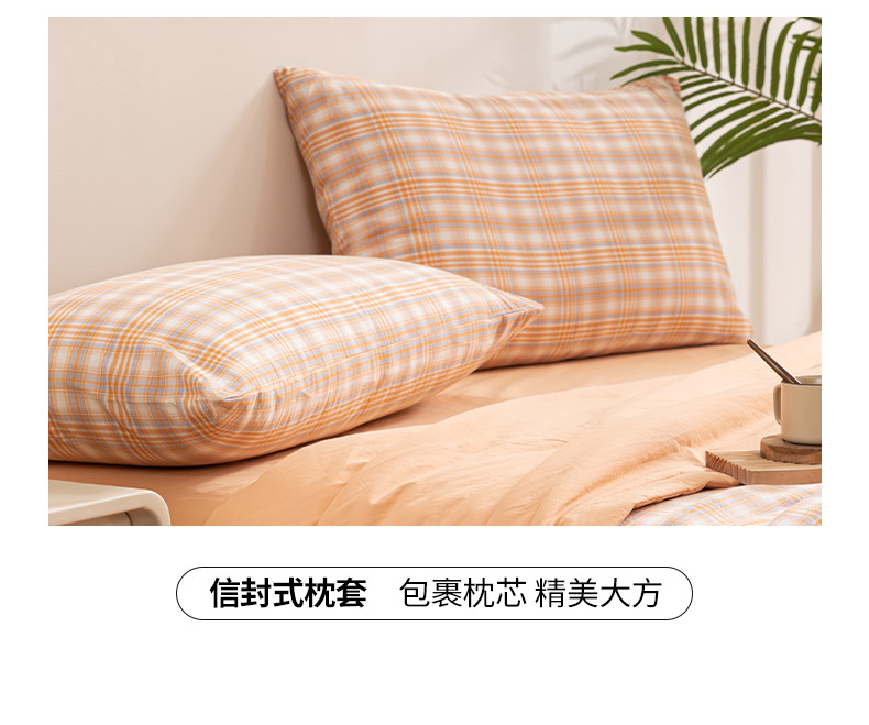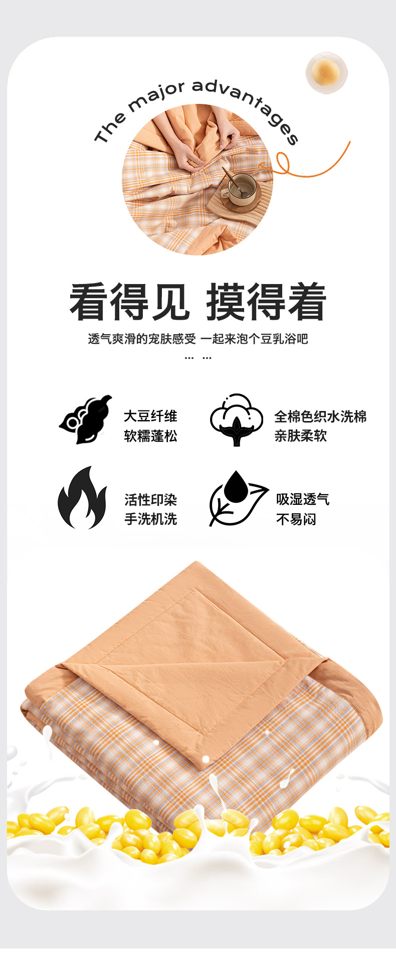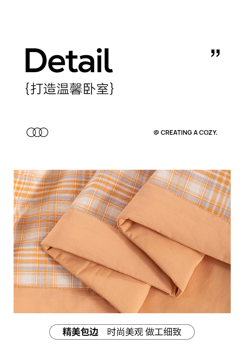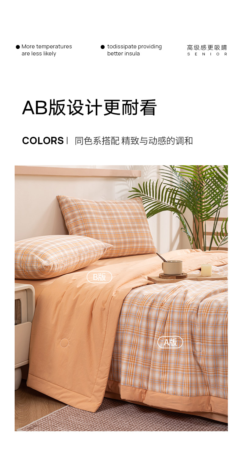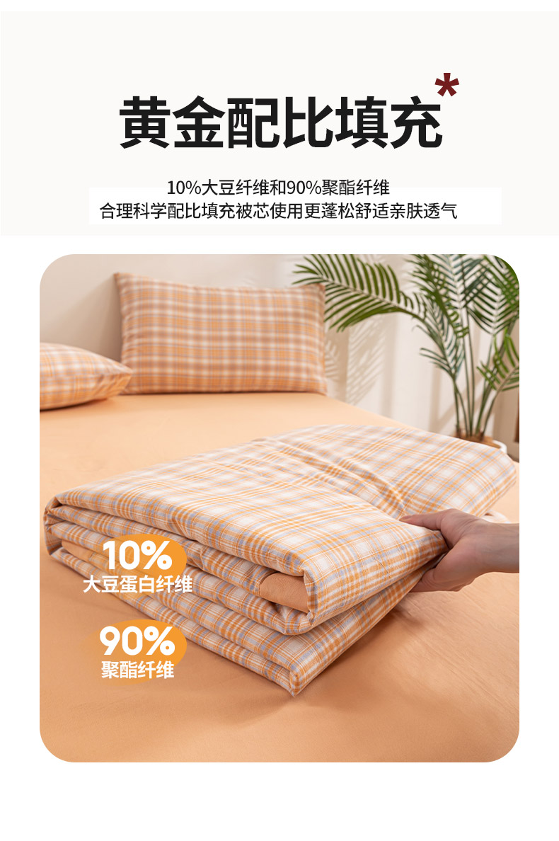 商品名称:吾诺 2025 全棉色织水洗棉夏被大豆夏被四件套被子被芯空调被夏凉被 桔色格