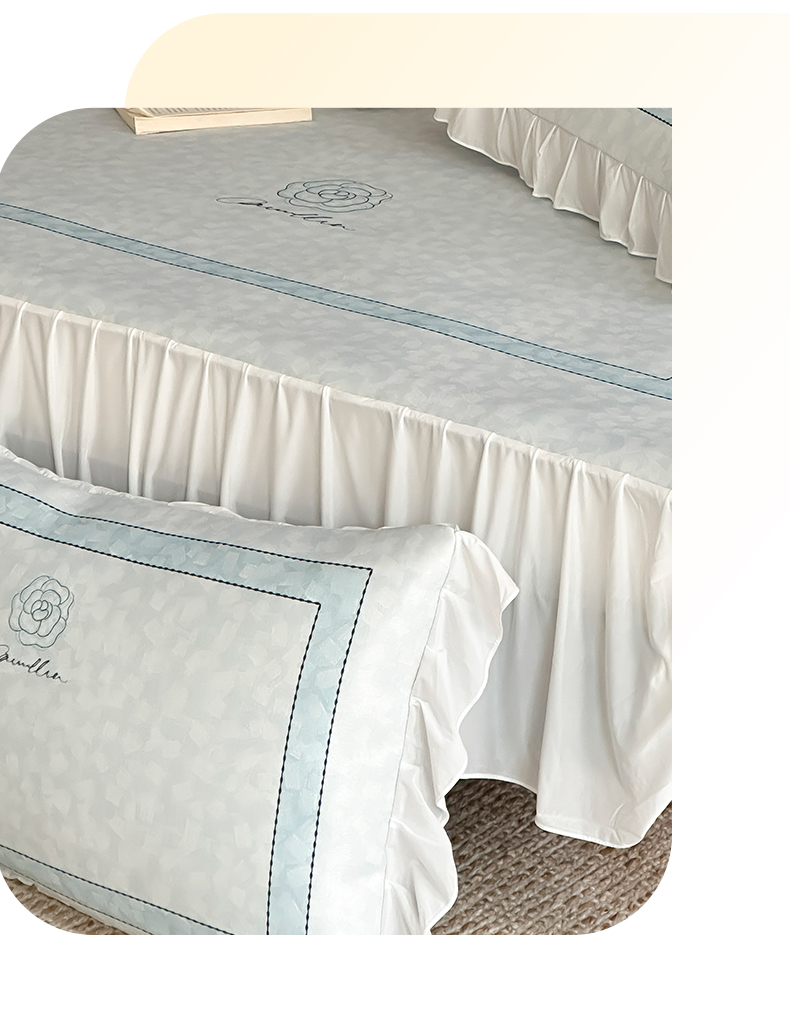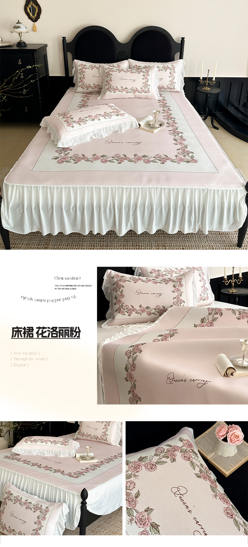 商品名称:三味舒屋 2025新款法式床裙款数码印花冰丝凉席三件套 床裙-云裳