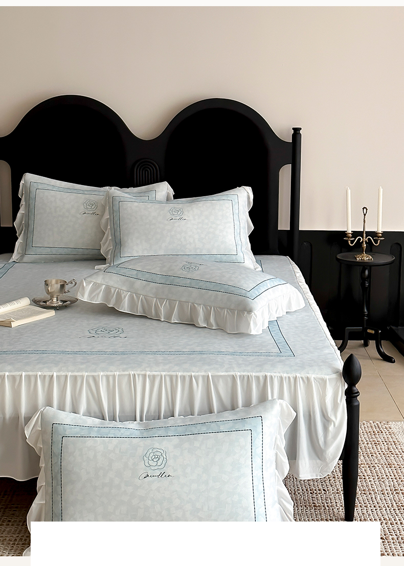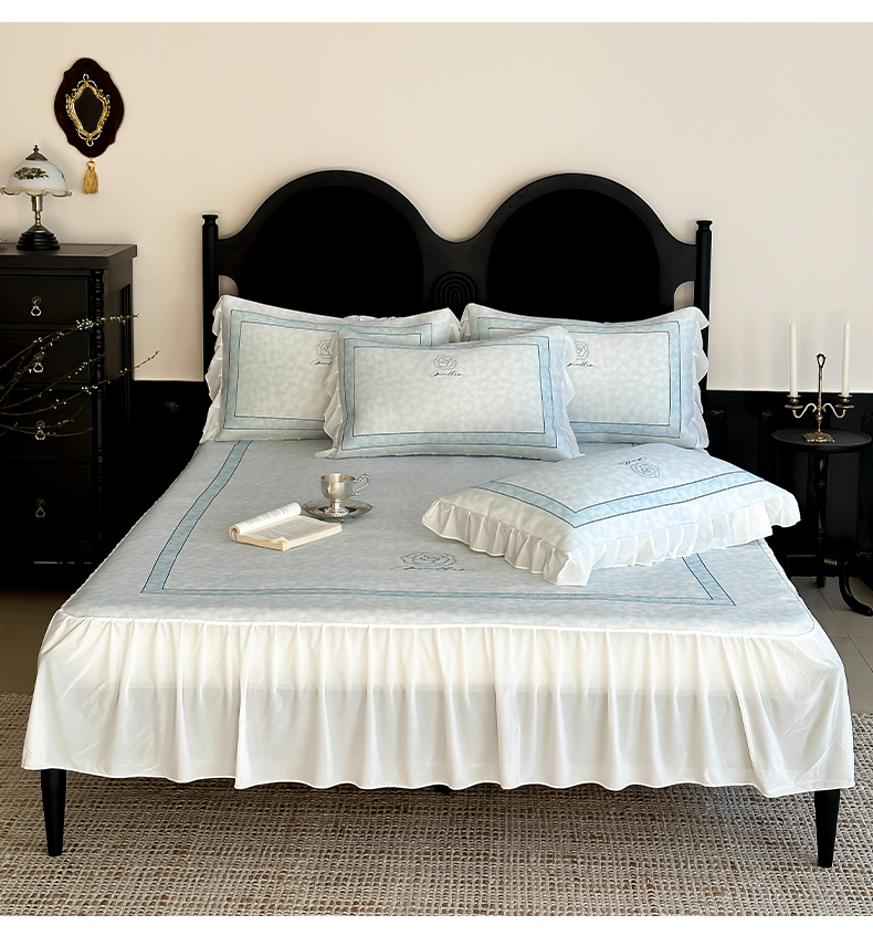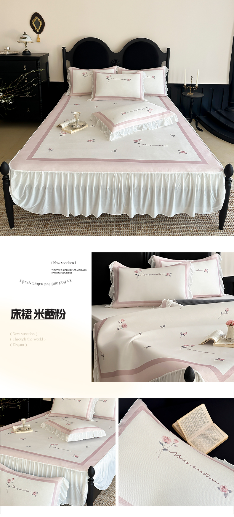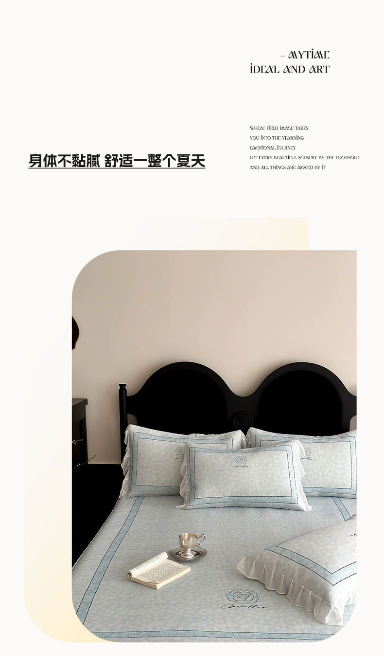 三味舒屋 2025新款法式床裙款数码印花冰丝凉席三件套 床裙-云裳