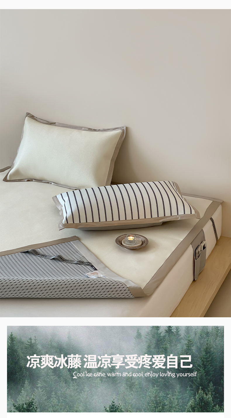 商品名称:三味舒屋 2025新款韩风简约抗菌防螨900D高端养生冰藤席 床笠 仙踪绿