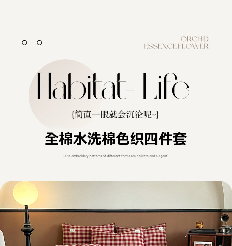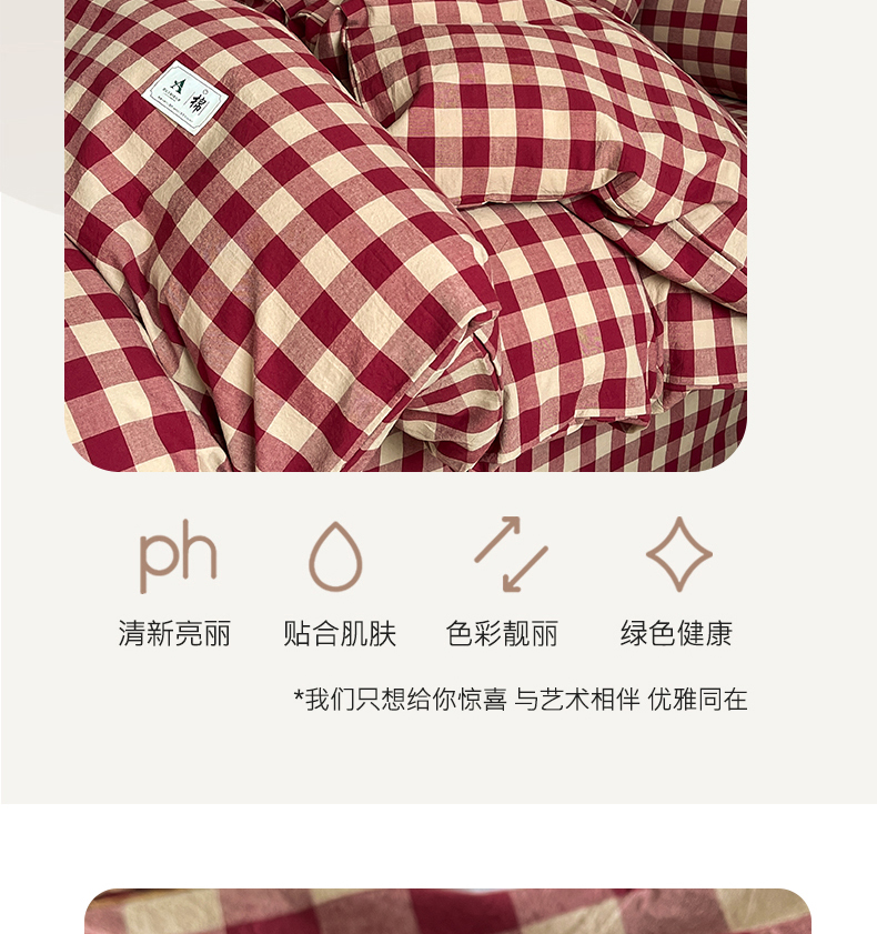 当前位置: 91家纺网 > 商品网购 > 床品套件 > 四件套 > 其它四件套 > 21度C 2025复古风全棉A类母婴级四件套 夏沫红