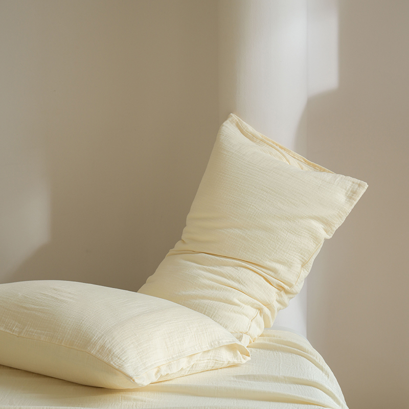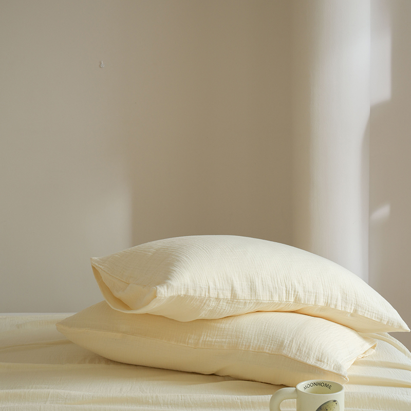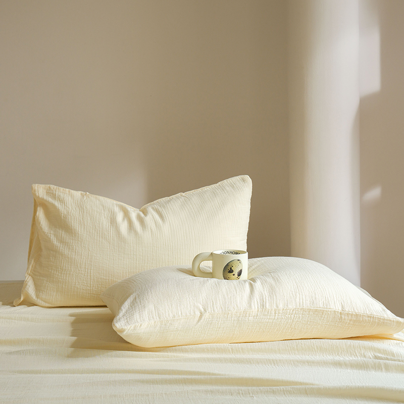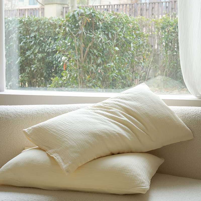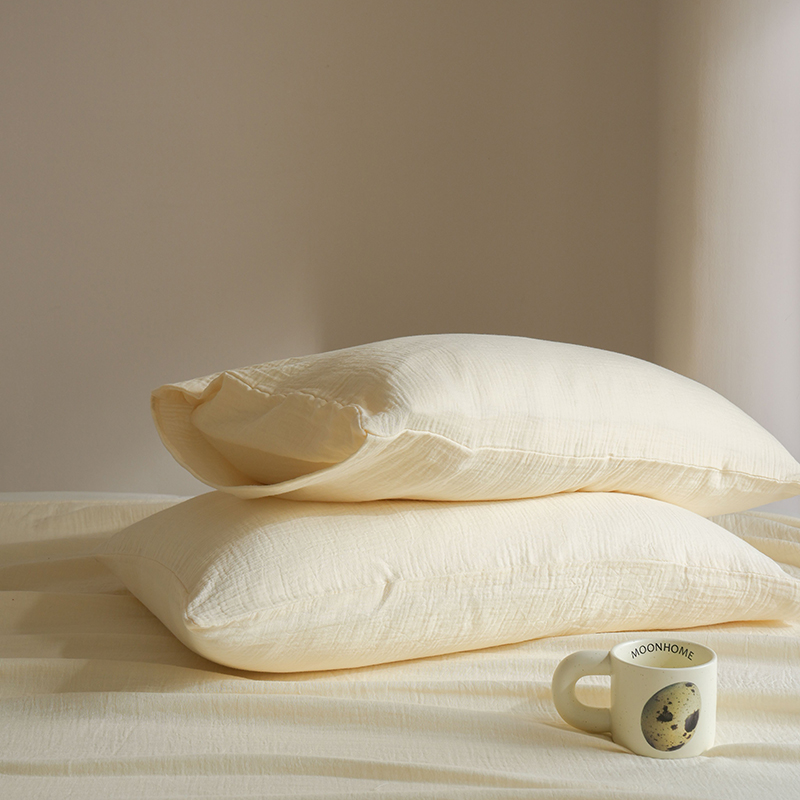 商品名称:简纯主义 2025新款全棉有机雾感纱双层皱皱纱系列单枕套奶酪