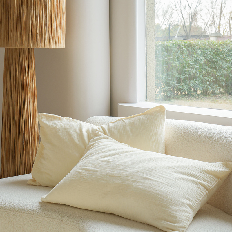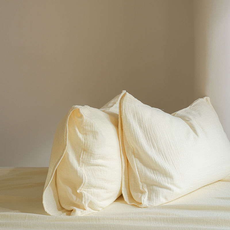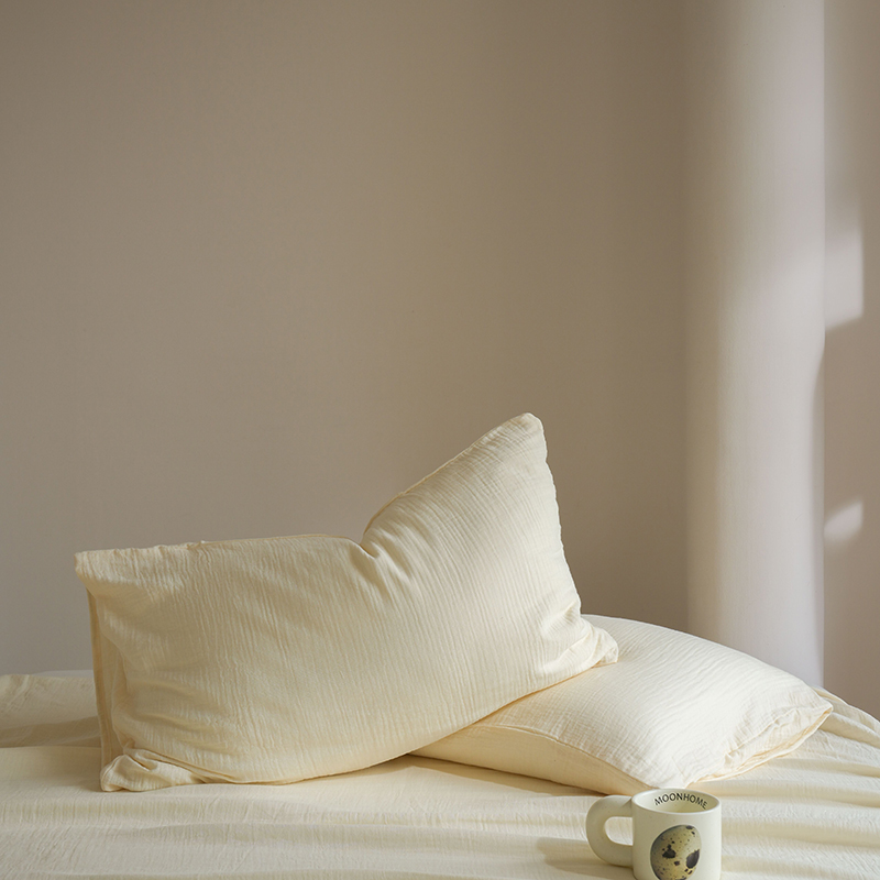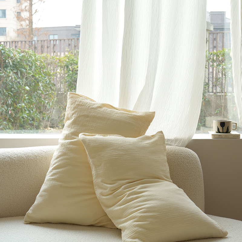 简纯主义 2025新款全棉有机雾感纱双层皱皱纱系列单枕套奶酪