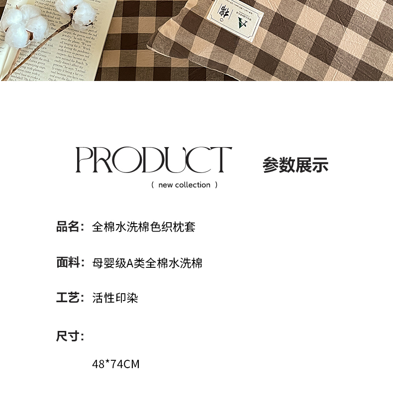 商品名称:21度C 2025复古风全棉A类枕套 夏沫咖