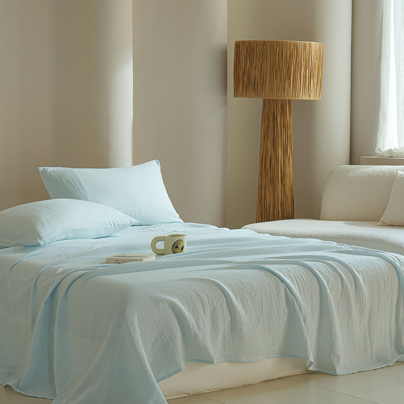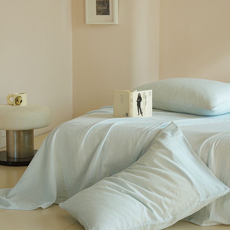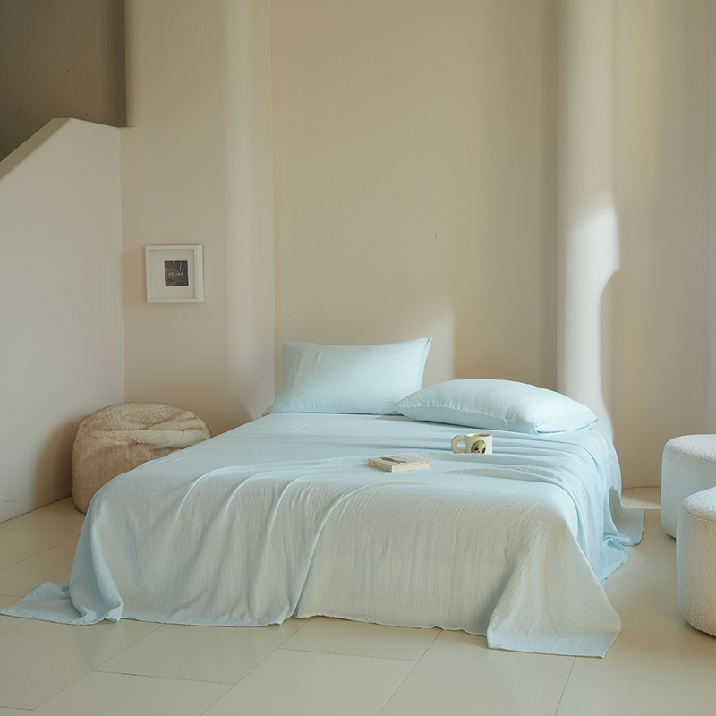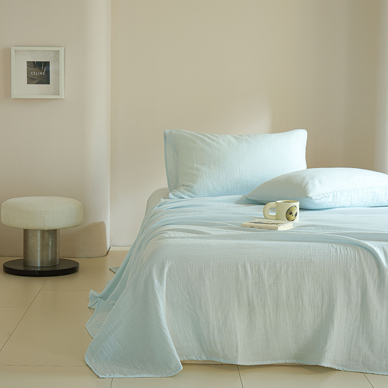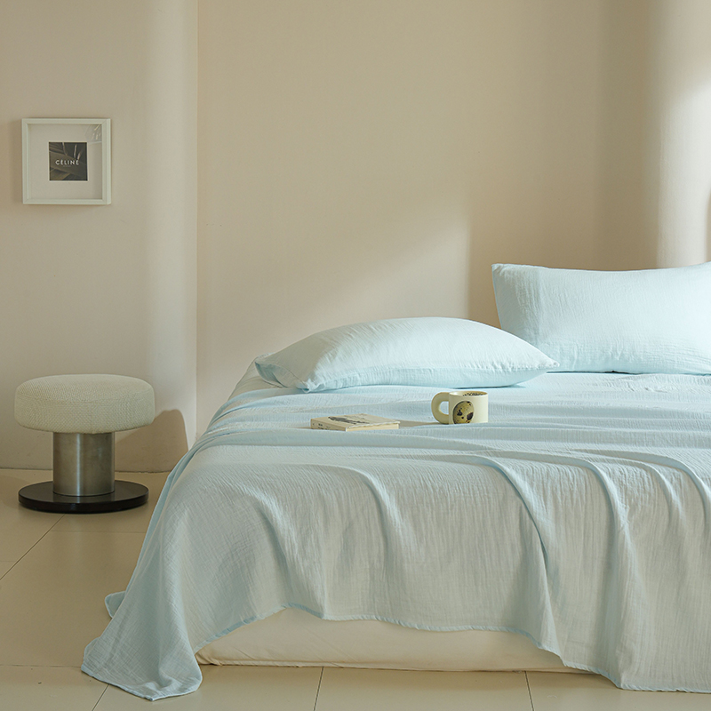 简纯主义 2025新款全棉有机雾感纱双层皱皱纱系列单床单蓝云