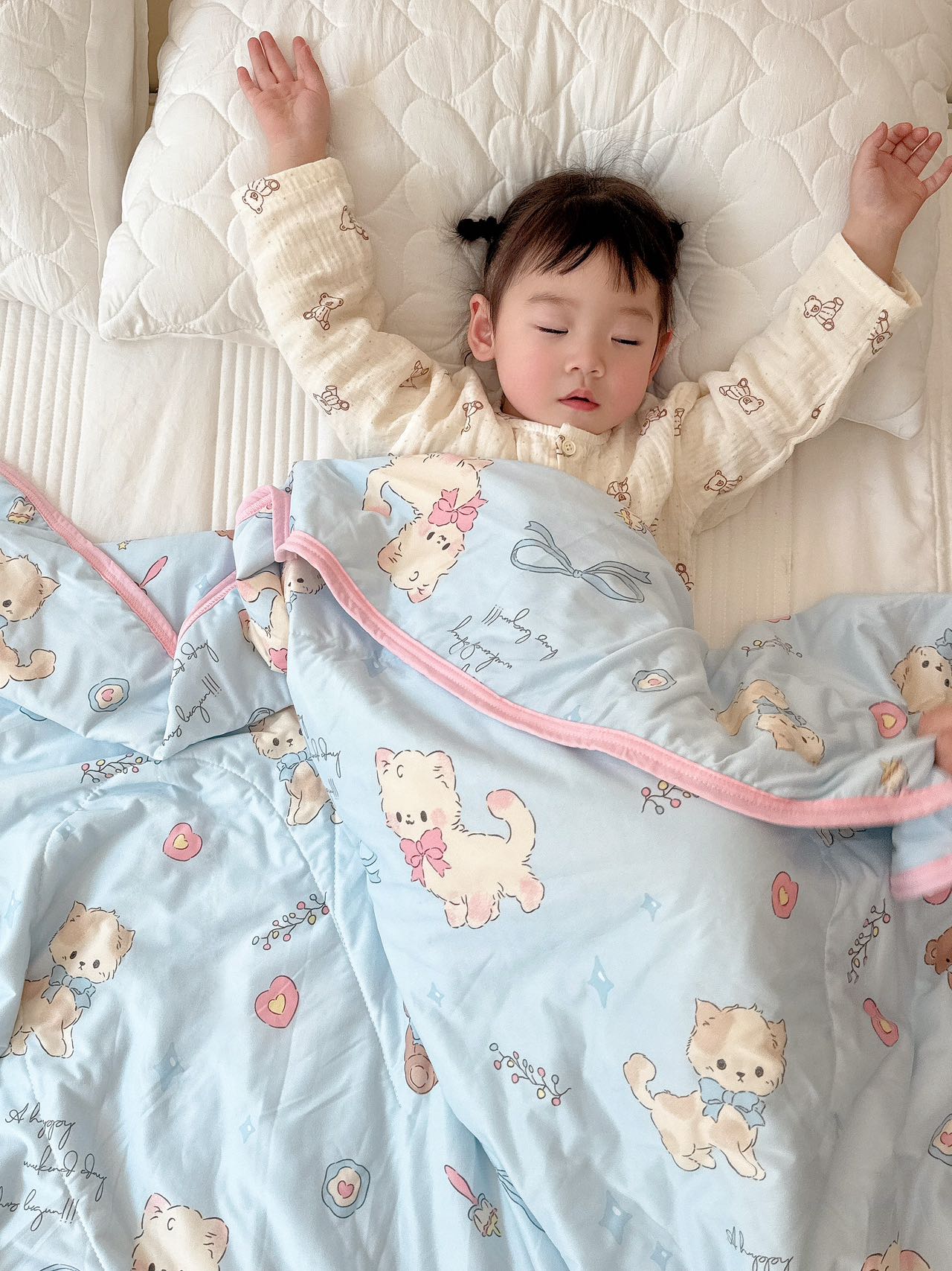兜米家居 2025夏季A类针织棉夏凉被小清新卡通双面针织棉空调被子被芯 宠物喵喵