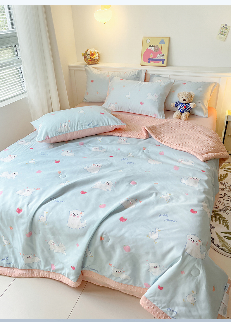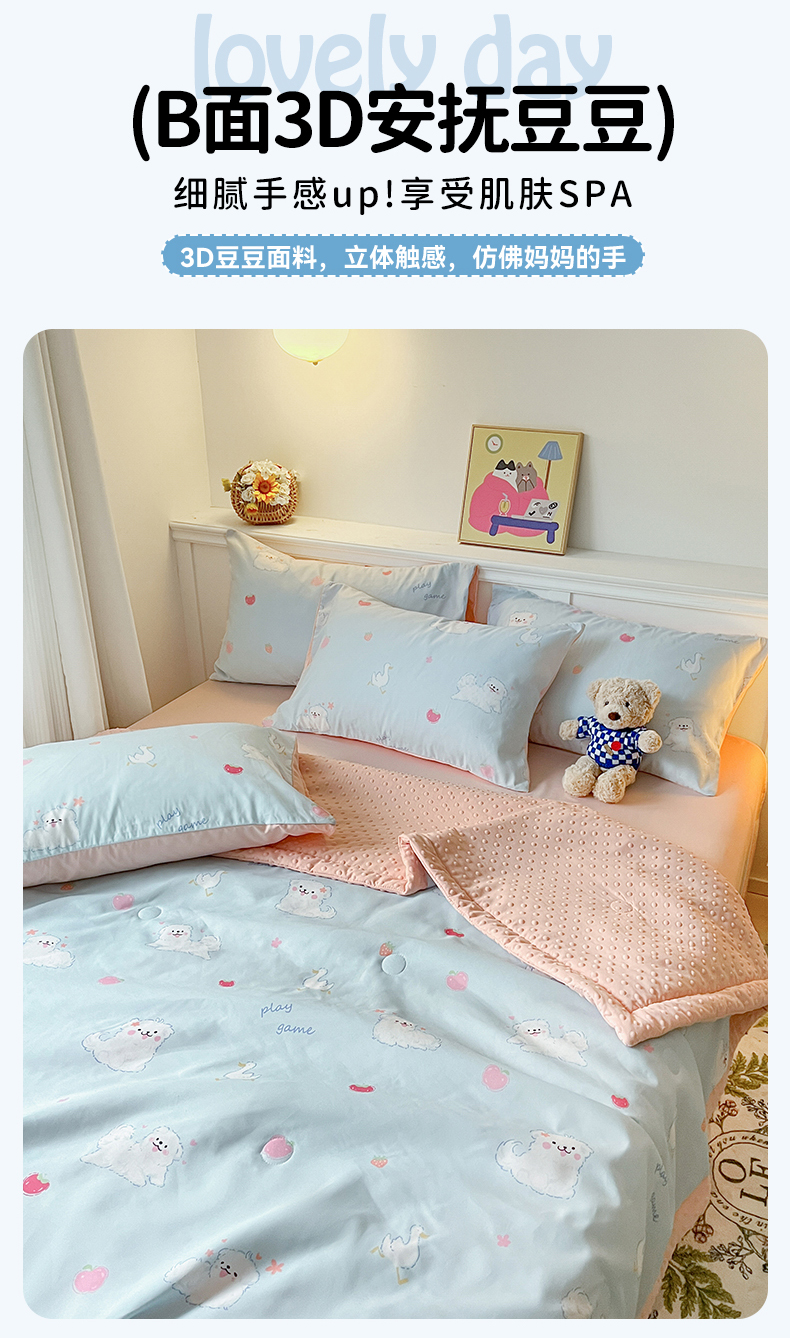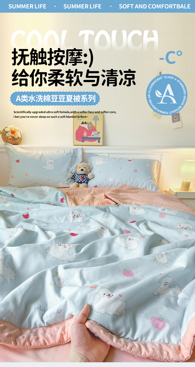 盛秋家纺 2026新款A类水洗棉豆豆夏被系列 甜心猫+奶油粉