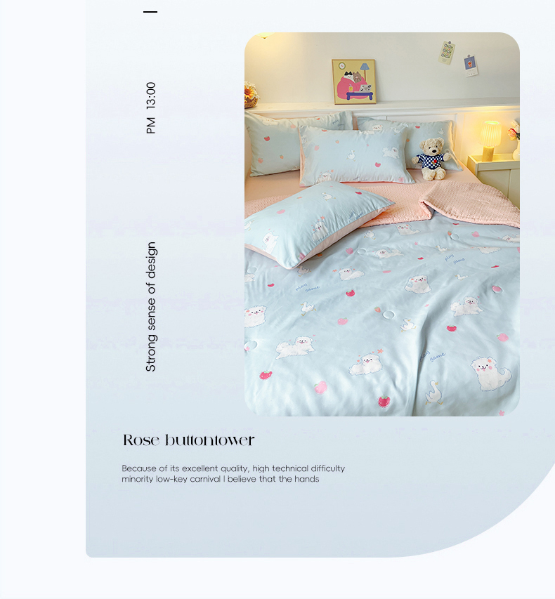 • 91家纺网 家纺一手货源 找家纺 (总)盛秋家纺 2026新款卡通款A类水洗棉印花四件套,爱心猫咪+花朵蓝,格子铺粉+花朵蓝,满山猫+猫爪,软萌汪汪蓝+花朵粉,森林小象蓝+花朵蓝,生日派对+花朵粉,天使小马粉+花朵蓝,田园萌狗+花朵咖,甜茶日记+花朵粉,小狗来信+花朵粉,熊熊乐园+花朵咖,修勾蓝+花朵蓝