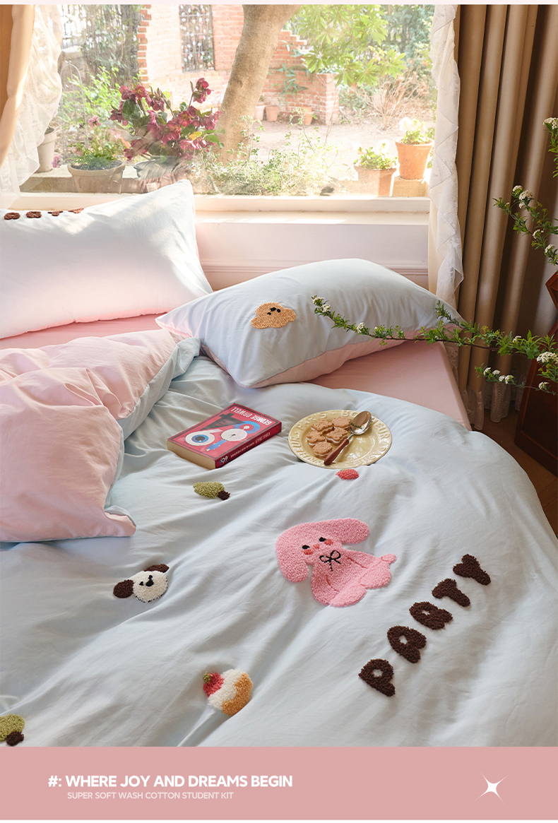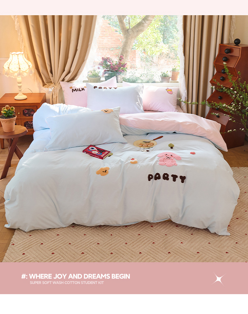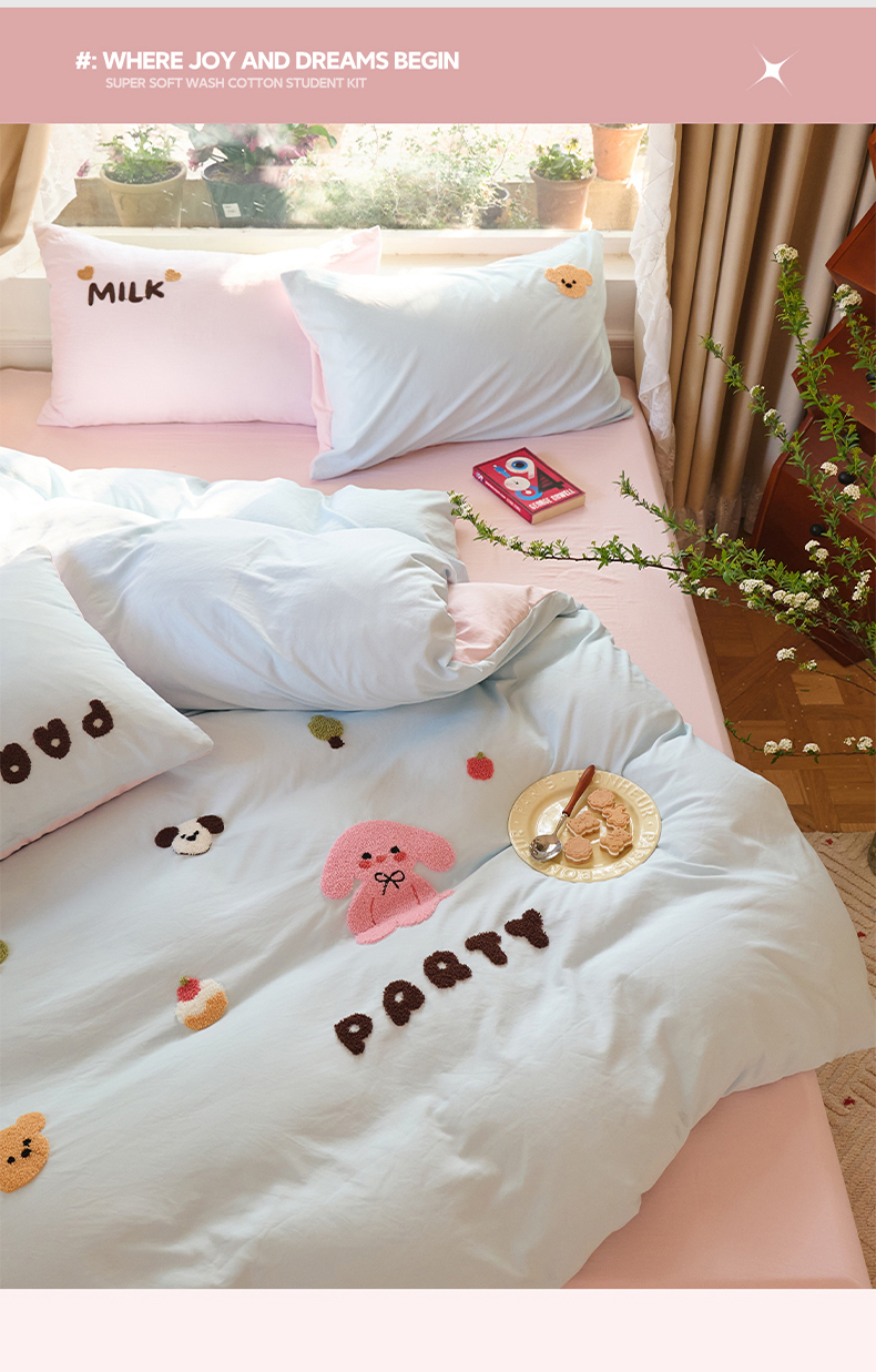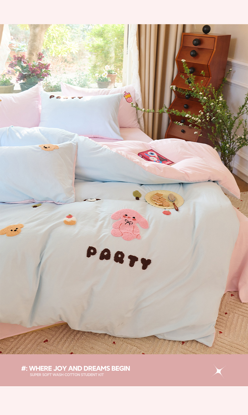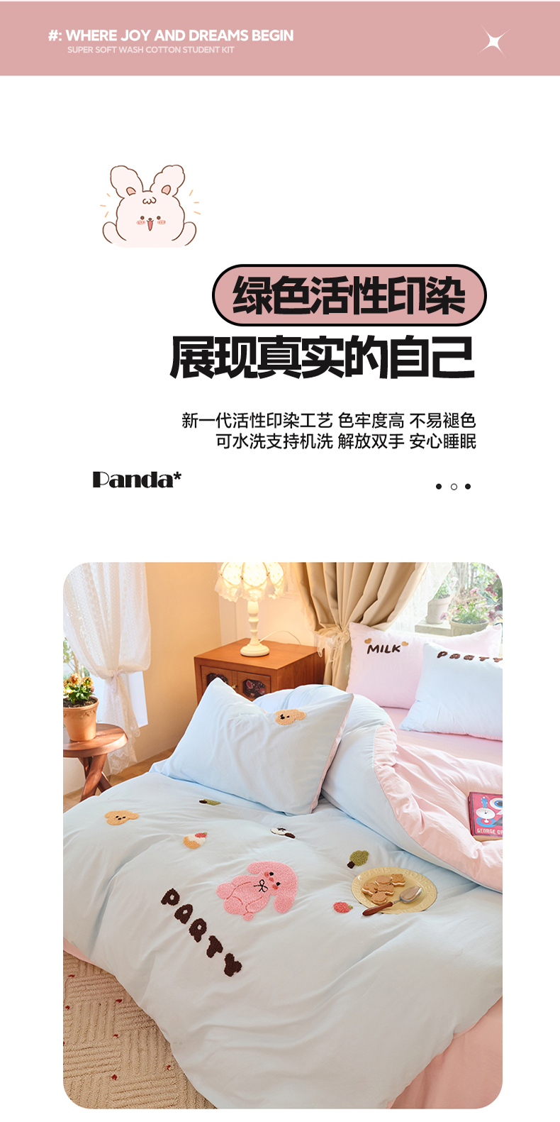 当前位置: 91家纺网 > 商品网购 > 床品套件 > 四件套 > 全棉普通四件套 > 鑫喜莱 2025新款水洗棉毛巾绣四件套场景一【全系图有买家秀文件】 兔子派对