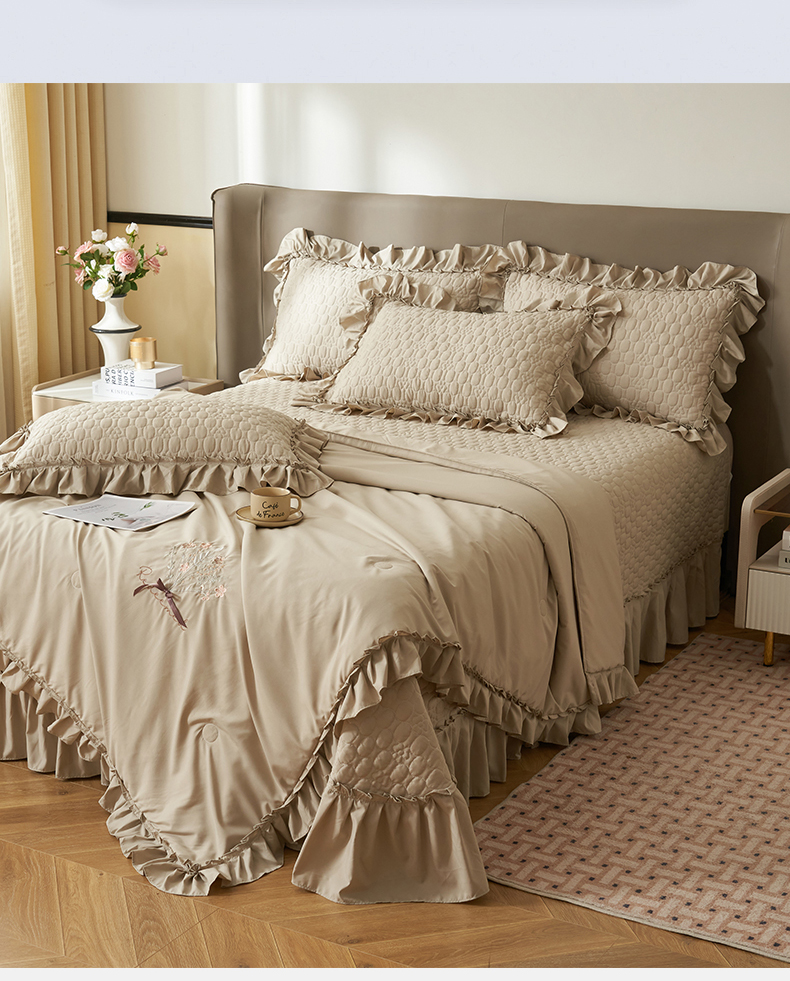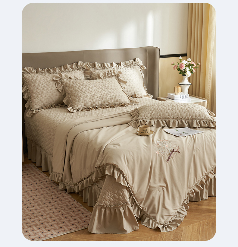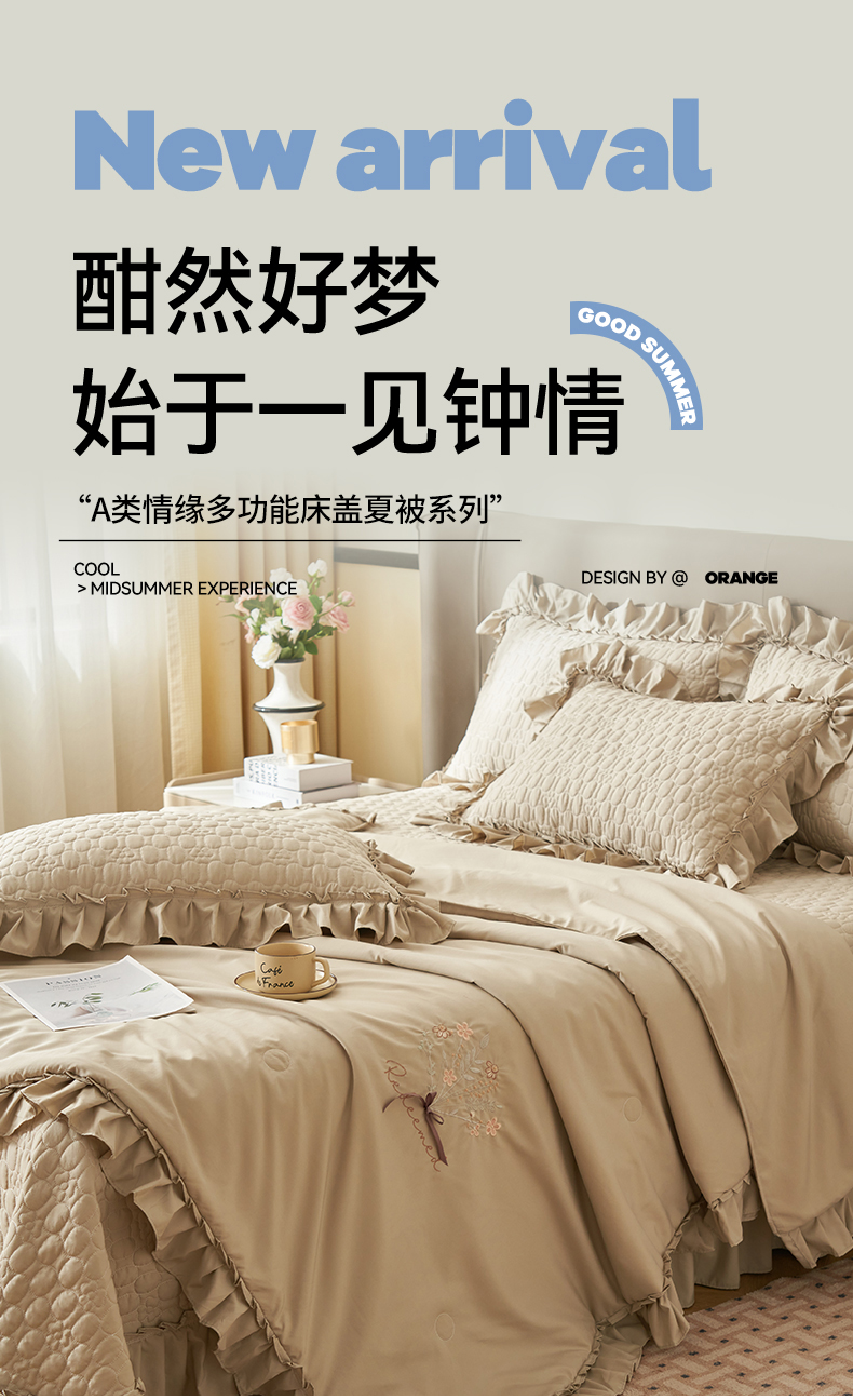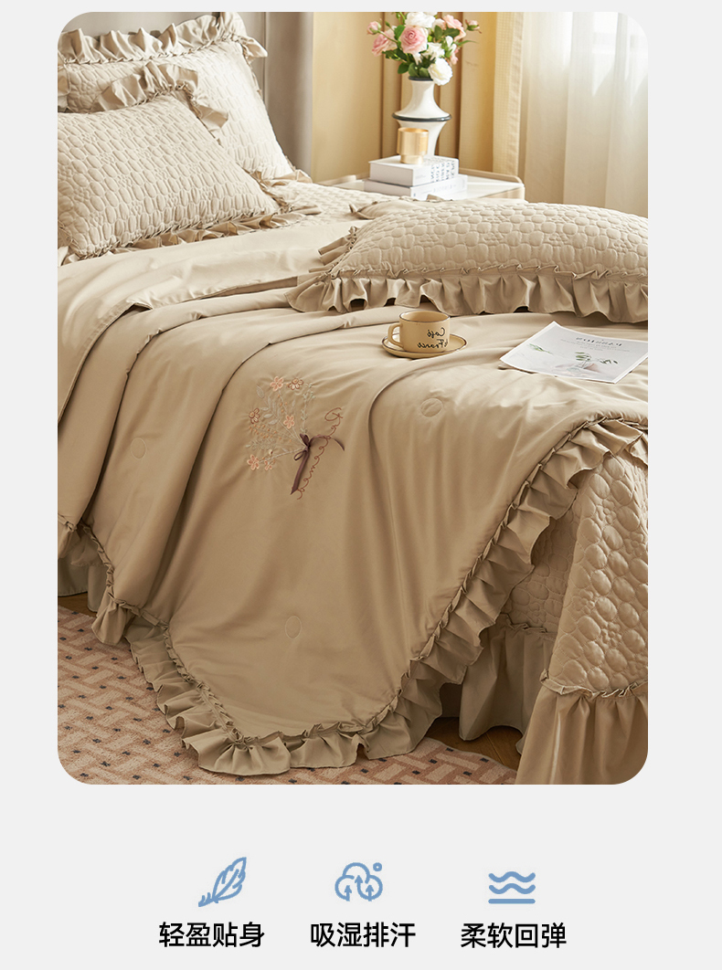 恒爱家纺 2025新款A类情缘多功能床盖四件套 经典驼
