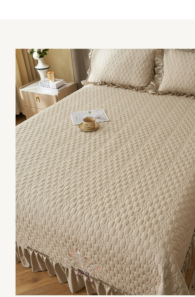 商品名称:恒爱家纺 2025新款A类情缘多功能床盖四件套 经典驼