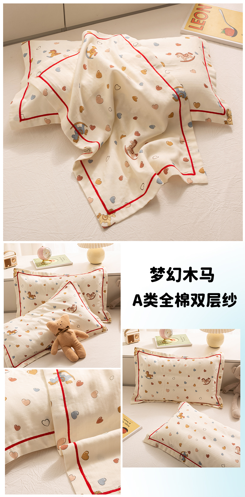 当前位置: 91家纺网 > 商品网购 > 床上用品 > 枕套 > 萌番宝 2025新款A类全棉纯棉水洗双层纱卡通儿童单枕套信封枕单枕套 枕套单件 梦幻木马