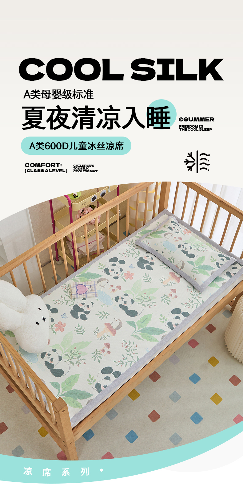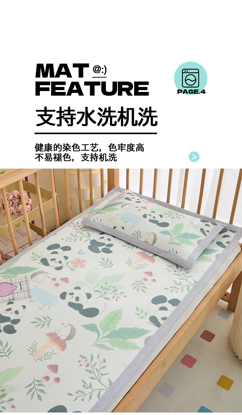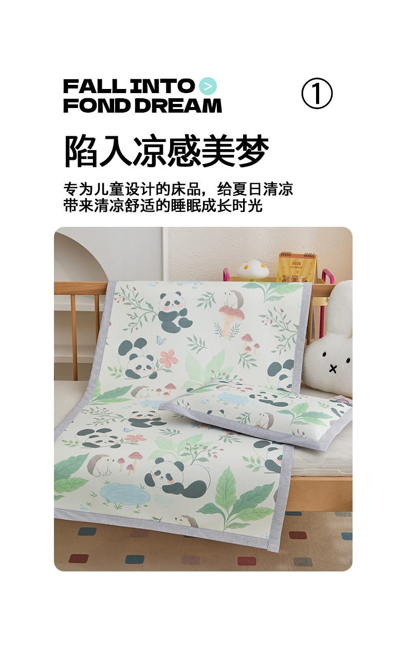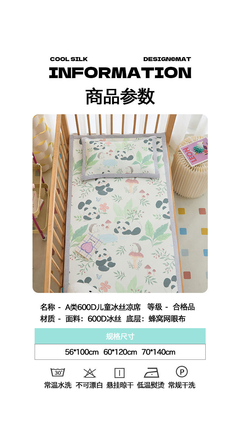 商品名称:欣品希家纺 2025新款A类600D儿童冰丝凉席 熊猫懒懒