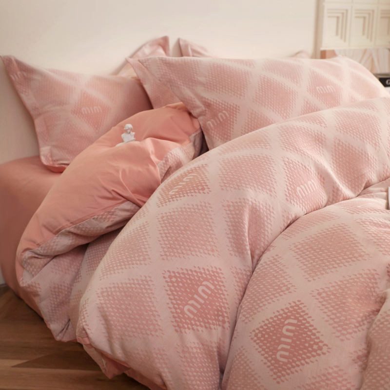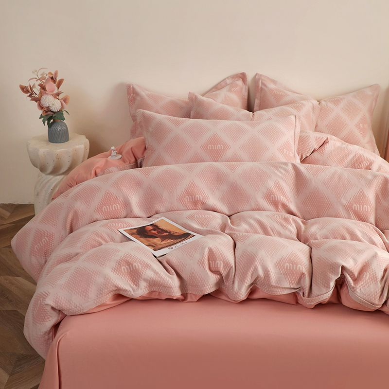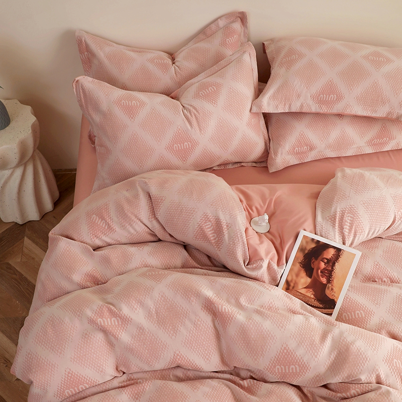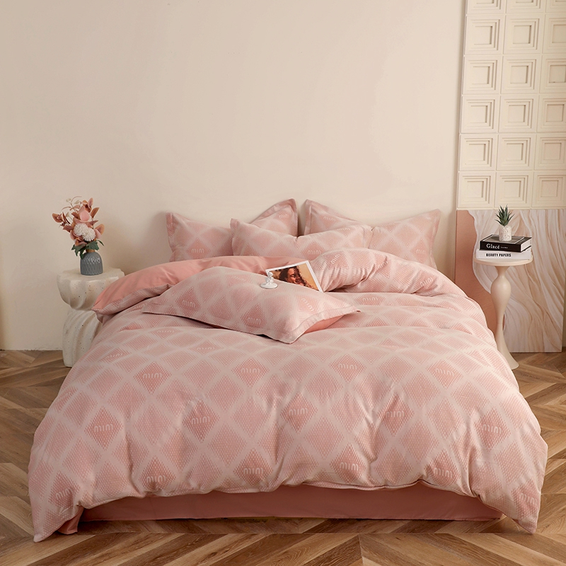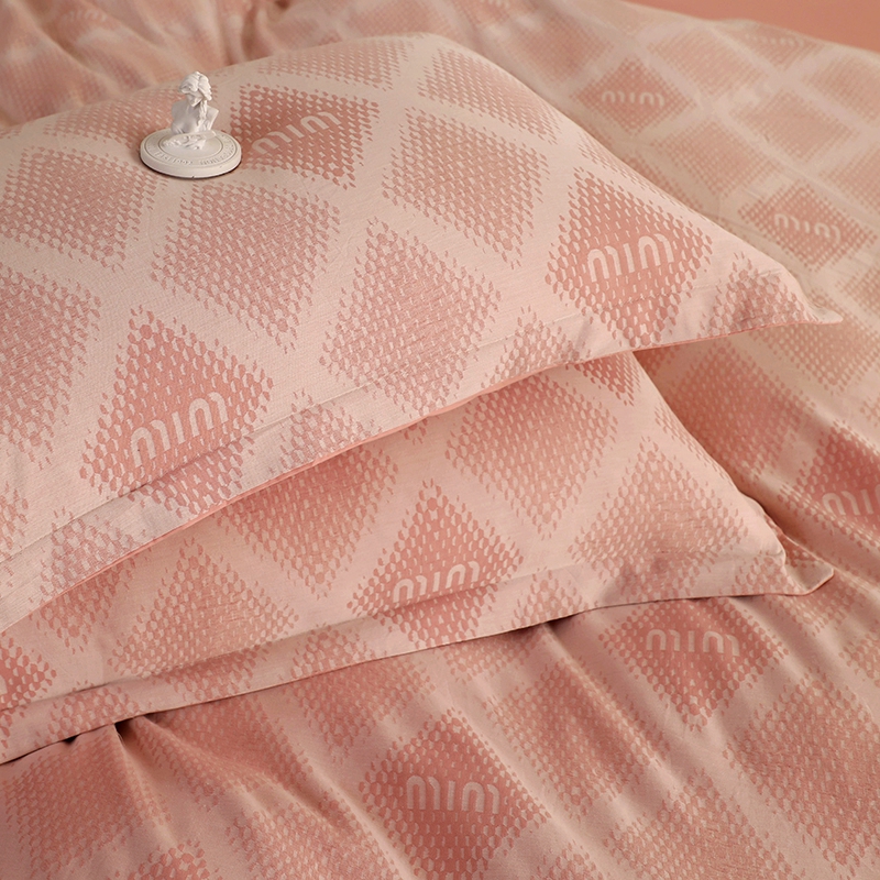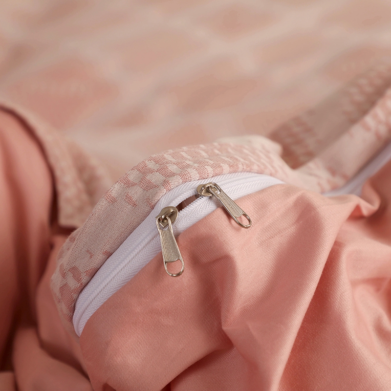 昊川家纺 2025新款全棉双层纱水洗色织大提花四件套 极简-粉